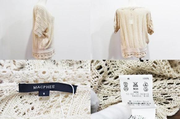 | 商品説明 | 【管理番号】 003396 【商品名】 MACPHEE/マカフィー 【アイテム】 メッシュプルオーバー 【サイズ】 1(肩幅:約38cm 身幅:約53cm 袖丈:約22cm 着丈:約57cm) 【色・素材】 ベージュ・綿100% 【外観ランク】 Sランク |