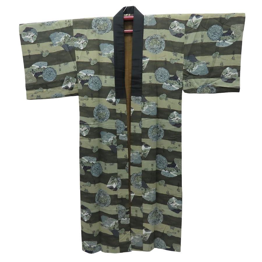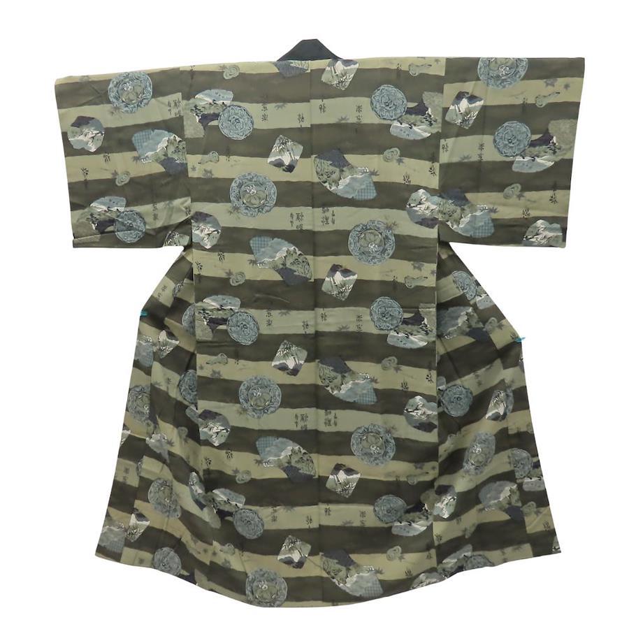 品名【中古】 襦袢 綿 グリーン ブラウン モスリン メンズ 男性