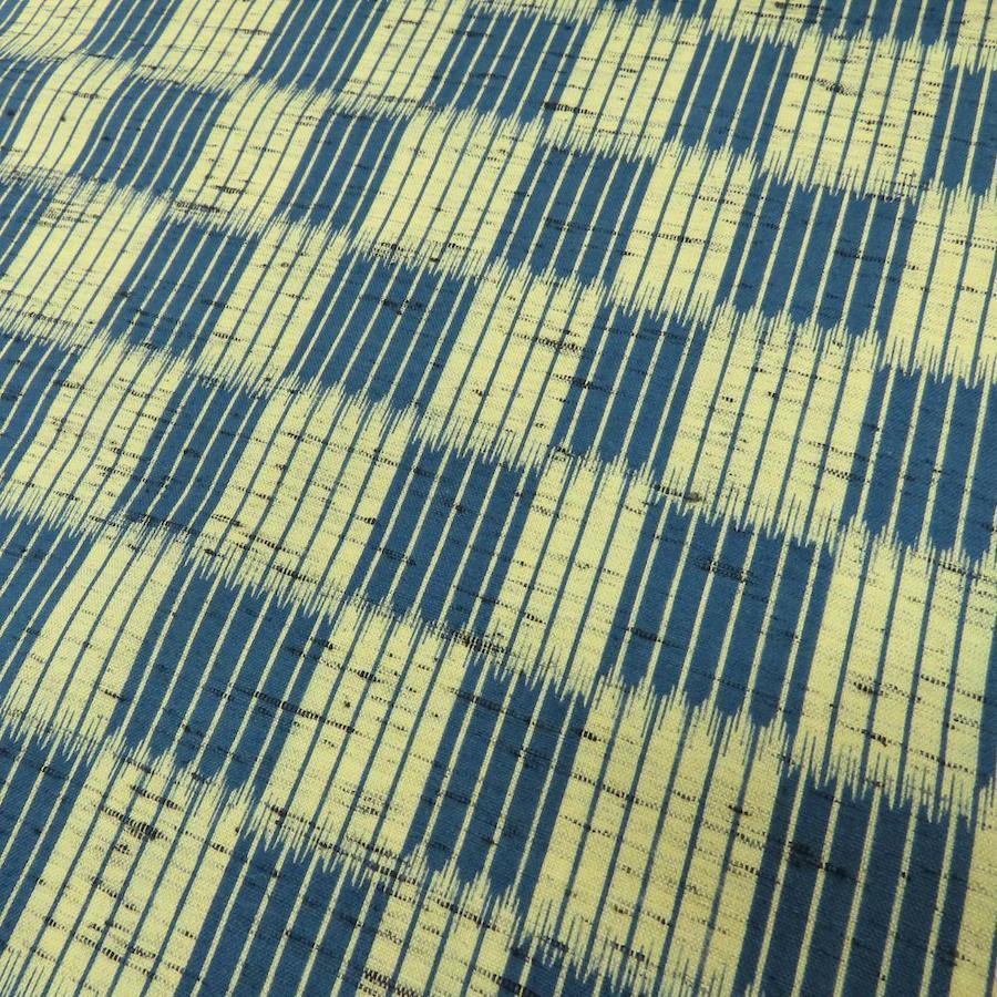 Used navy and yellow wool fabric, leftover, for remaking Japanese clothing, kimono, women's clothing.