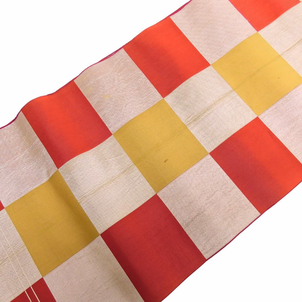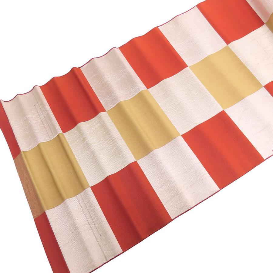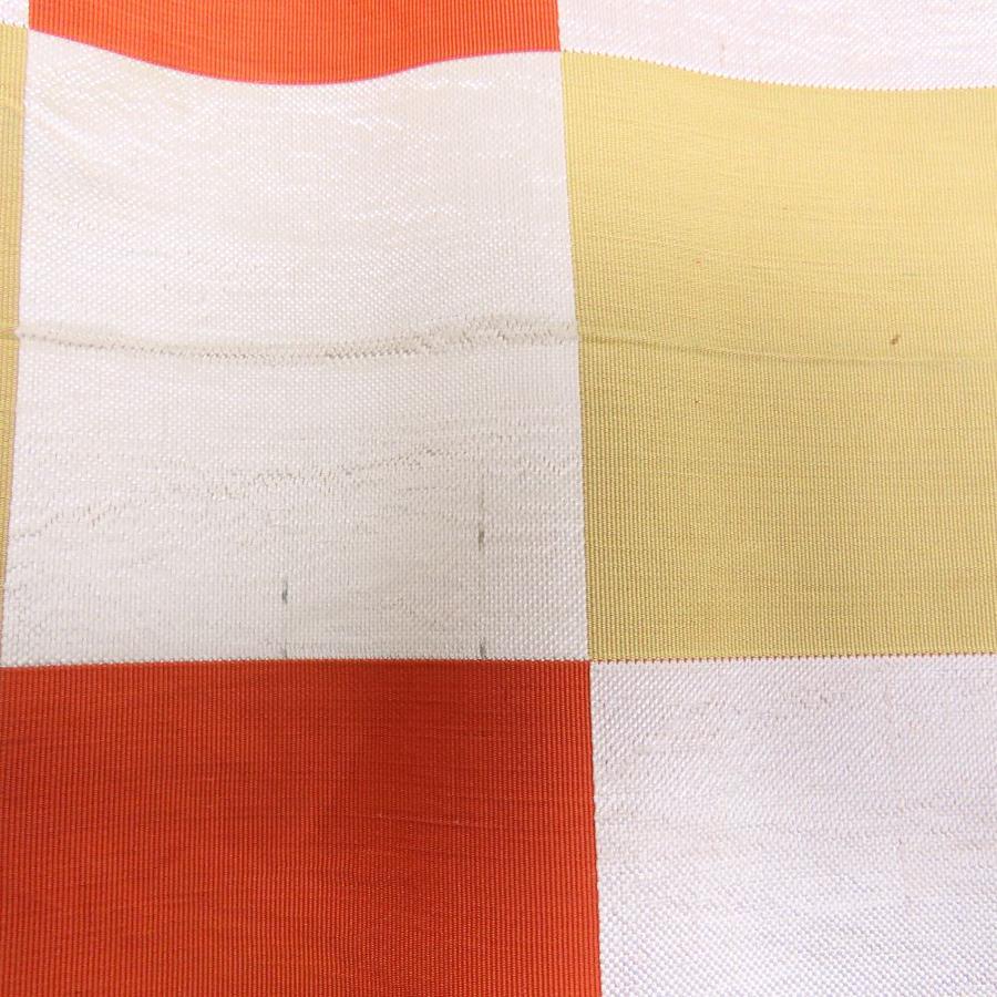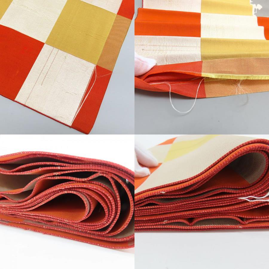 | 品名 | 【中古】 その他帯 正絹(金銀糸除く) オレンジ シルバー チェック柄 普段使い レディース 女性 |