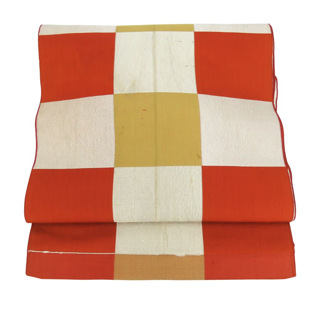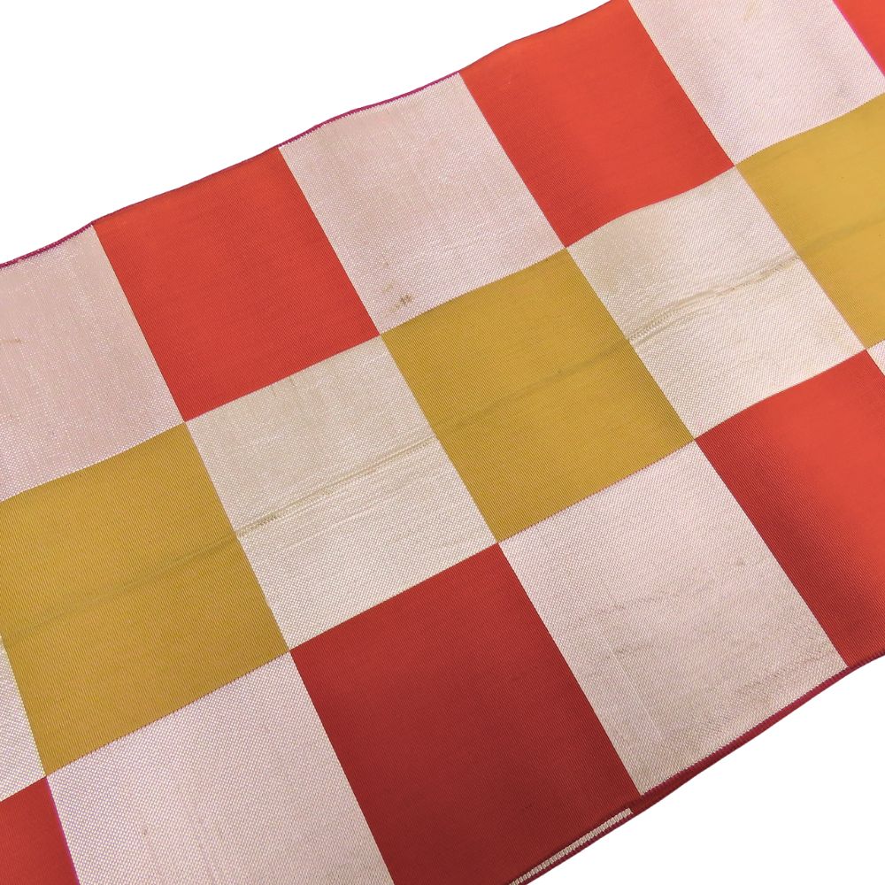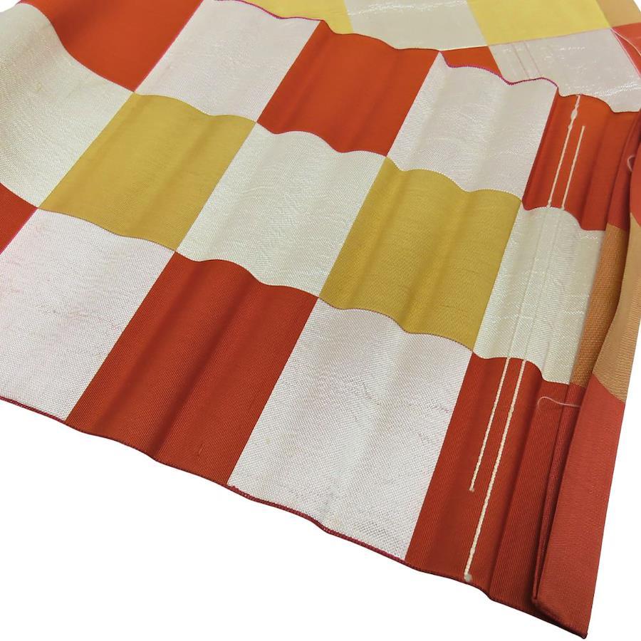 | 品名 | 【中古】 その他帯 正絹(金銀糸除く) オレンジ シルバー チェック柄 普段使い レディース 女性 |