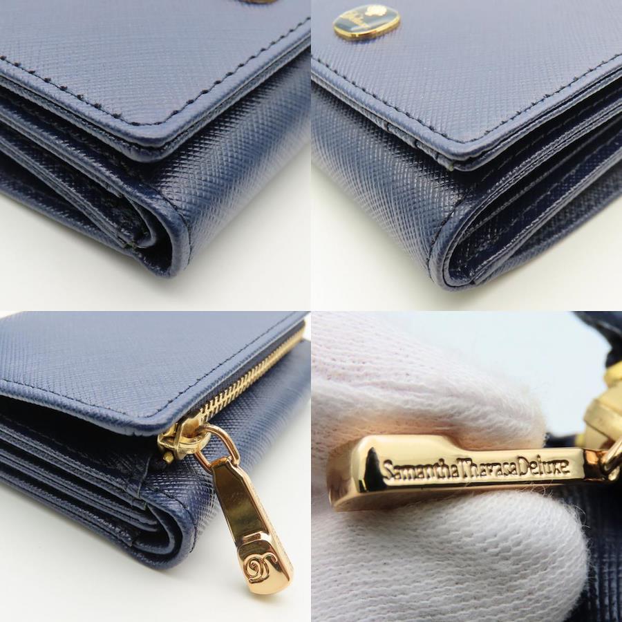 品名:【中古】 サマンサタバサ 三つ折り財布 サマンサタバサデラックス 合成皮革 ネイビー ゴールド金具 コンパクトウォレット 小物 レディース 女性 Samantha Thavasa