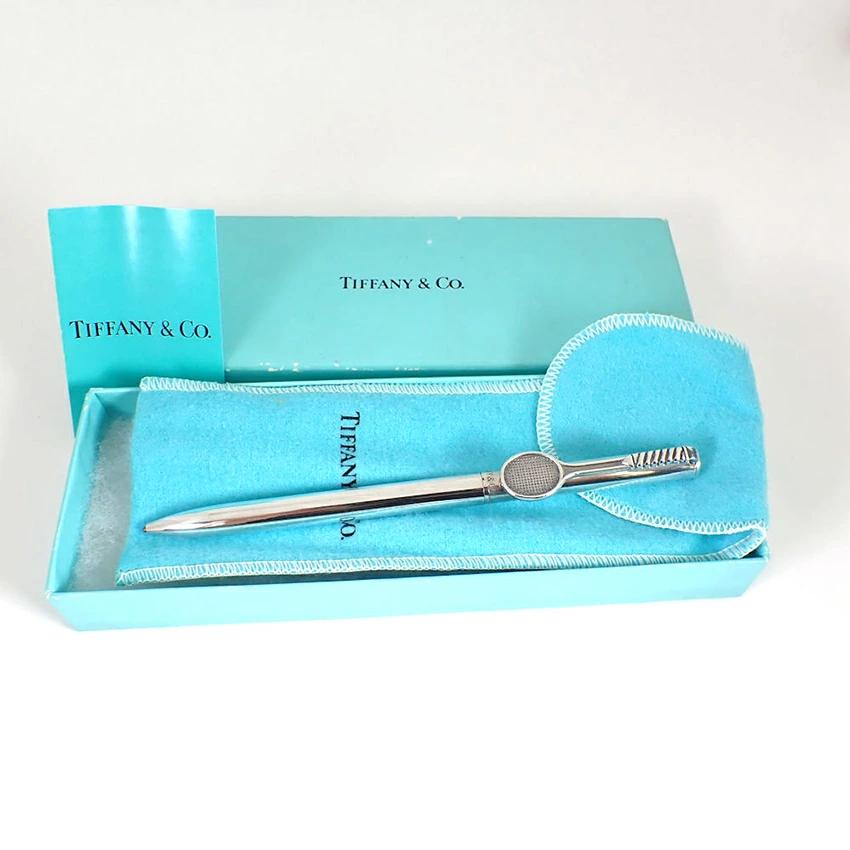 Product DetailsProduct Rank: AMaterial: Sterling Silver 925Weight: Approx. 25.4gLength: Approx. 13.0cm / Thickness: Approx. 7.4mmMotif Size: 45.7mm-11.9mmSpecifications: Twist-style / No ink remainingIncludes Tiffany case and cloth bagProduct DetailsThis is a rare Tiffany ballpoint pen featuring a tennis racket motif.It has been cleaned specifically for silver.Product Rank: [N] New or equivalent, in excellent condition with no defects. [S] Almost perfect, in excellent condition. [A] Light signs of use. [B] Signs of use. [C] Very heavy signs of use, obvious damage, or in need of repair. ____________________________Condition: Used