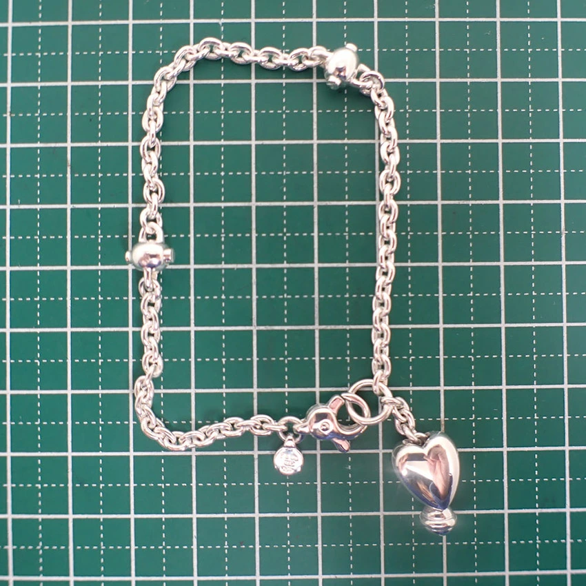 Product DetailsProduct Rank: A RankMaterial: Sterling Silver 925Weight: Approx. 12.4gTotal Length: Approx. 21.5cmHeart Motif: Approx. 17mm (height) x Approx. 10mm (width)Product DetailsHeart BraceletNewly polished.Product Rank: [N] New or equivalent, no defects and in very good condition [S] Almost no defects, in good condition [A] Minimal signs of use [B] Signs of use [C] Very heavy signs of use, obvious stains or damage, requires repair ____________________________Condition: Used