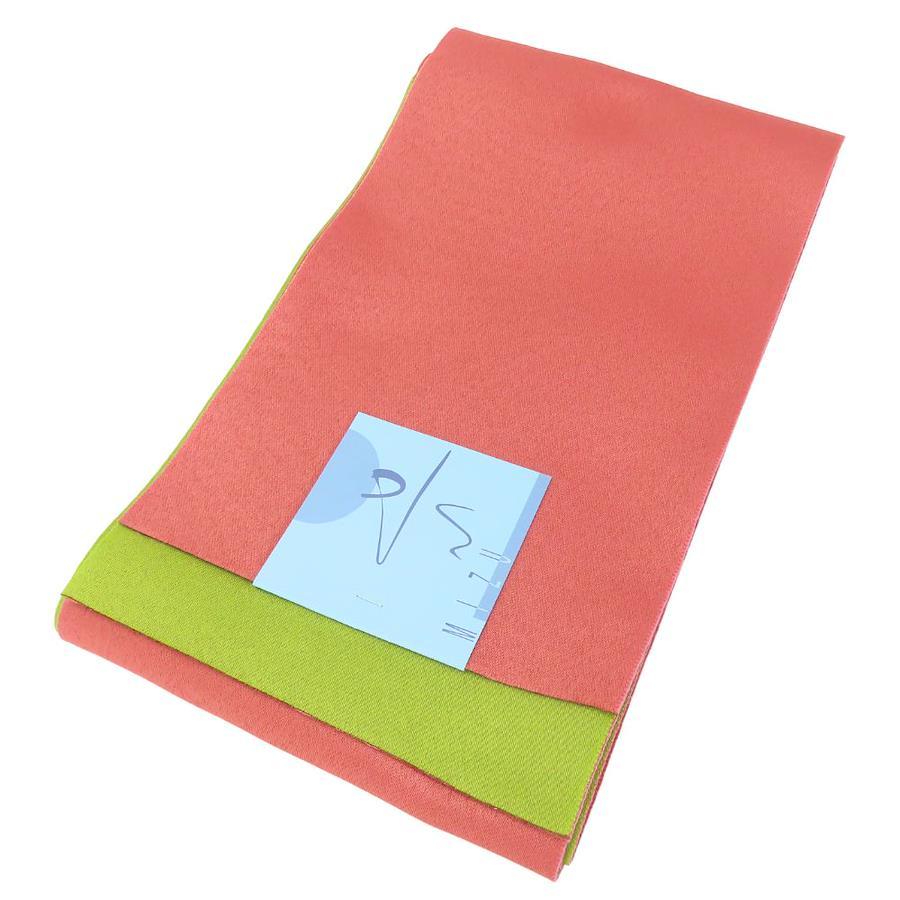 [Used] Unused display item, Yukata obi, polyester, pink and yellow-green, half-width obi, reversible, Japanese clothing, kimono, women's