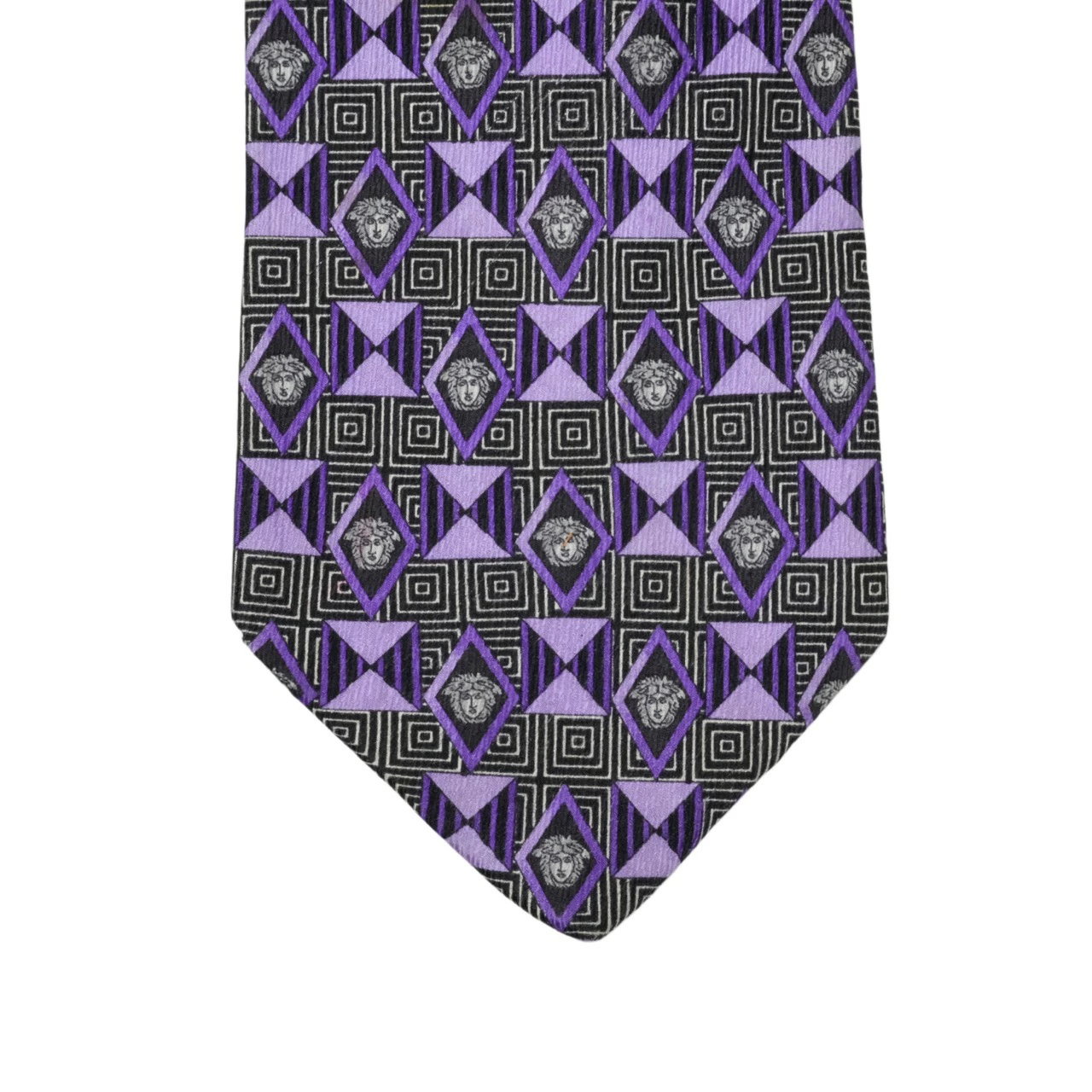 【中古・VINTAGE】 VERSACE ヴェルサーチ ネクタイ グレー 紫 シルク ヴィンテージ Tie Other apparel