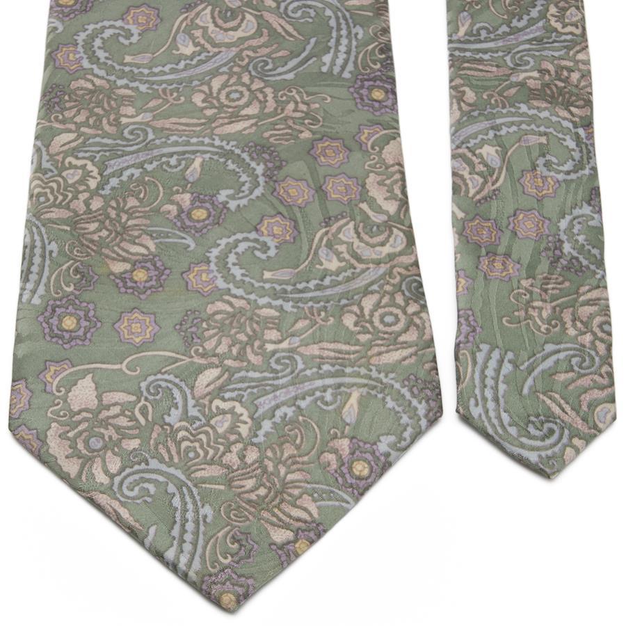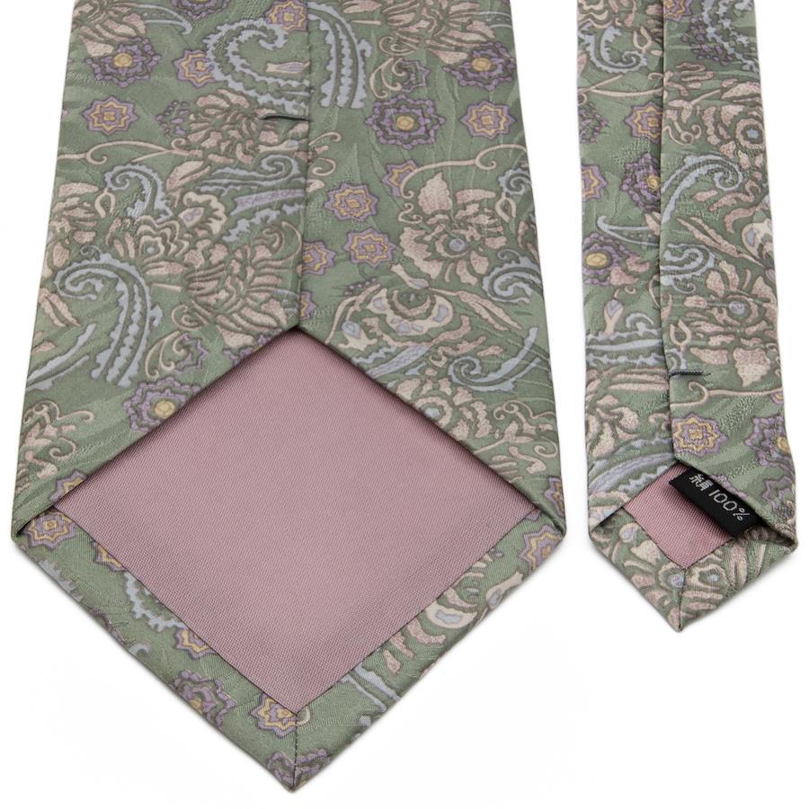 クラシックなペイズリーと植物柄が、お客様の胸元に知性と穏やかな印象を与えます。