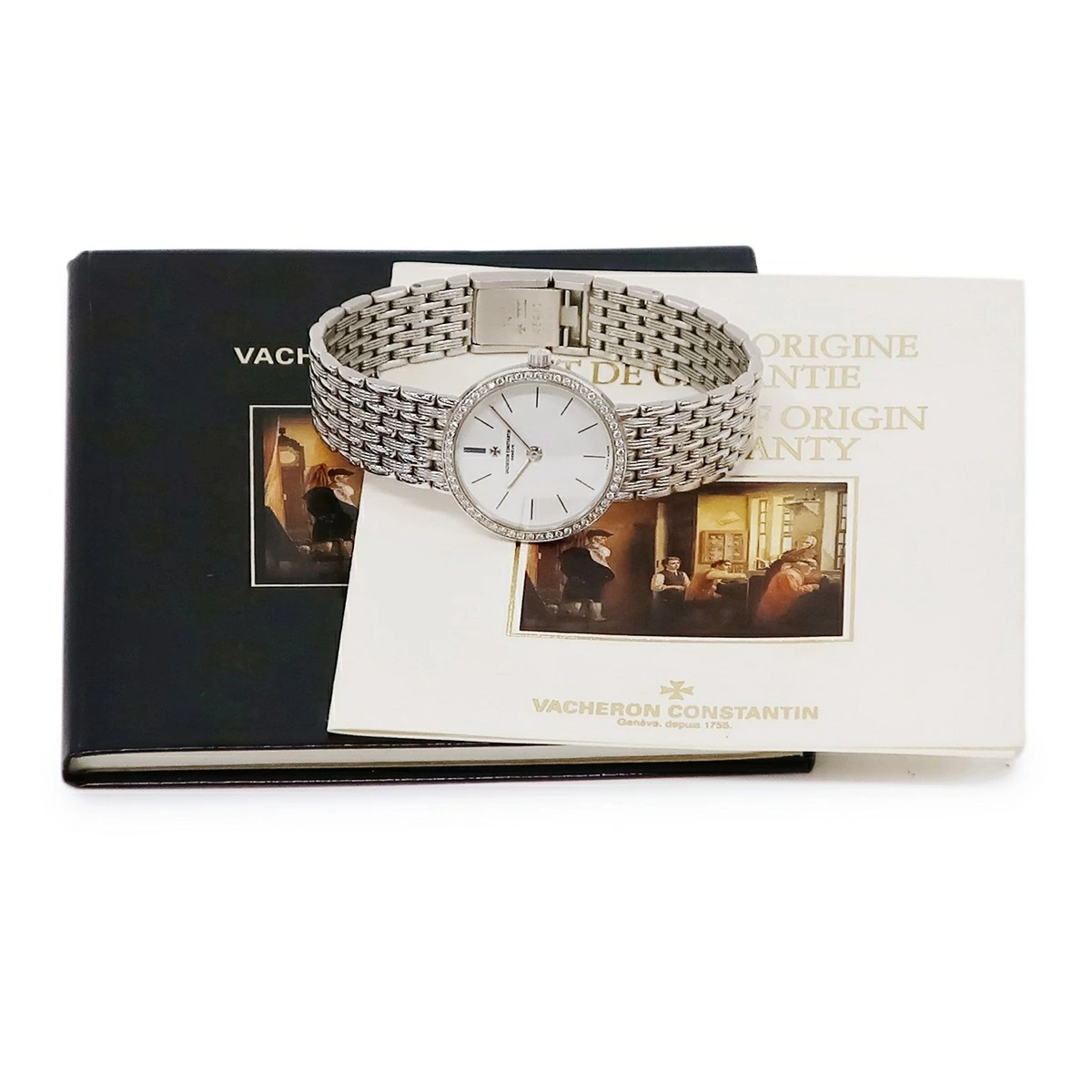 ヴァシュロン・コンスタンタン VACHERON CONSTANTIN 27593/454G-3 K18WG無垢 純正ダイヤ ヴィンテージ ラウンド レディース 腕時計クオーツ ホワイト 【中古】【店頭受取不可】