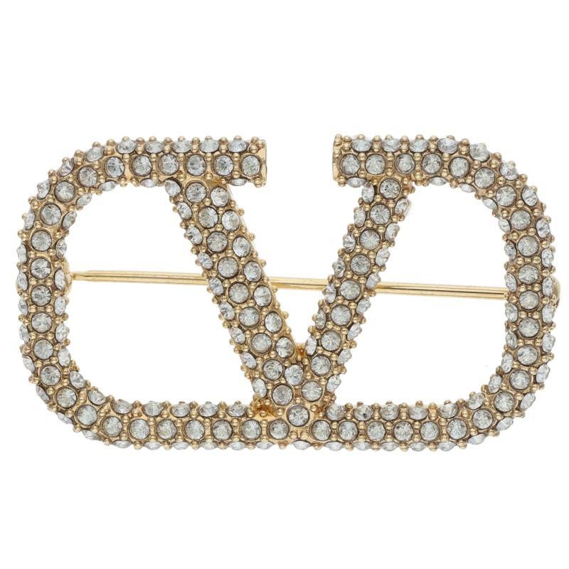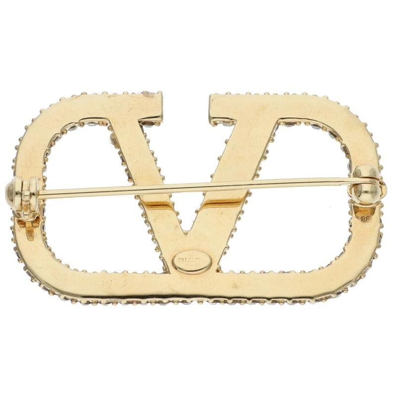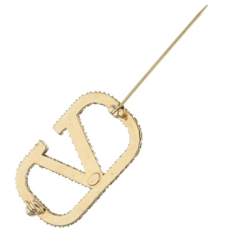Valentino Garavani Rhinestone V Logo Brooch (Gold and Clear, 7.95g) [012152] [BS99] [Accessory] [Pre-owned] bb344#rinkan*B