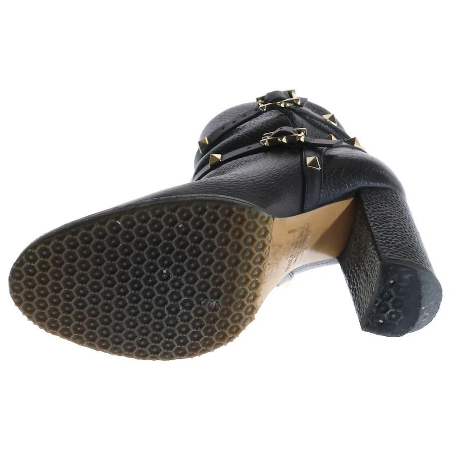 [モデル]ロックスタッズ ベルト レザー ショート アンクル ブーツ レディース ブラック