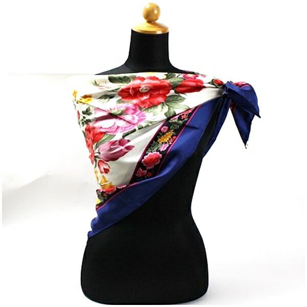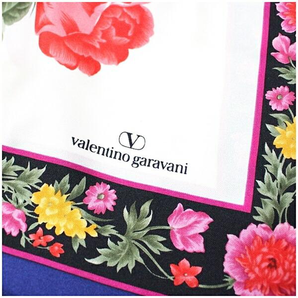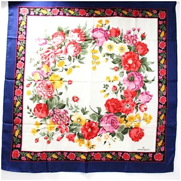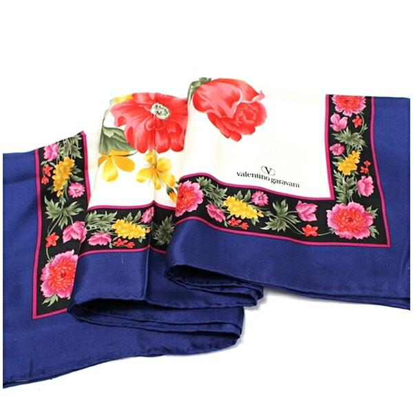 ヴァレンチノガラヴァーニ シルク スカーフ ホワイト×ネイビー 花柄 中古 Aランク valentino garavani | レディース 女性用