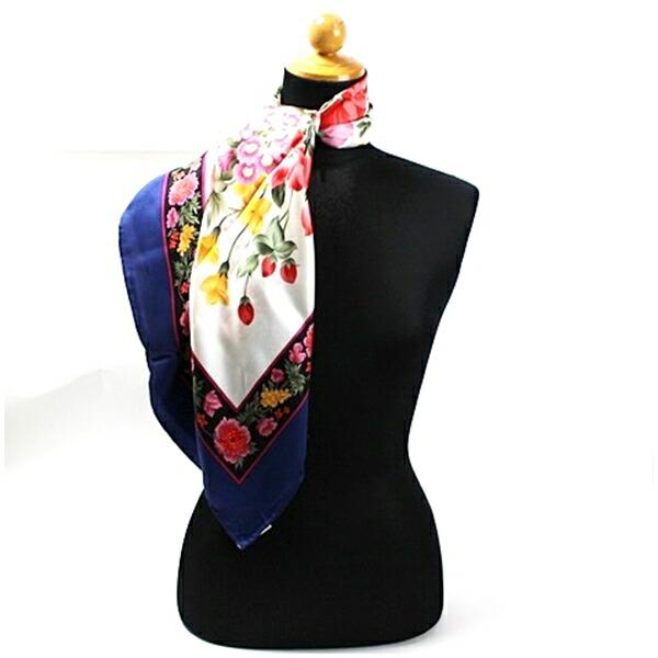 商品名ヴァレンチノガラヴァーニ シルク スカーフ ホワイト×ネイビー 花柄 中古 Aランク valentino garavani
