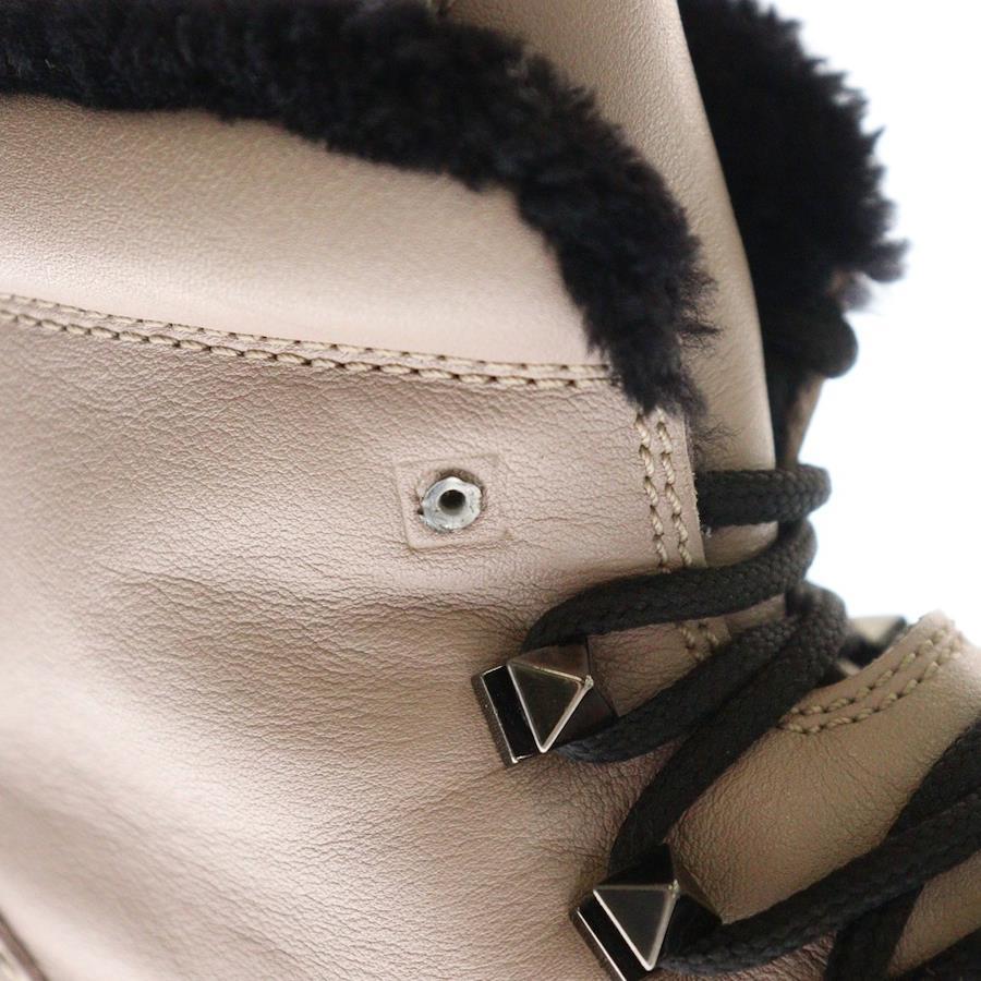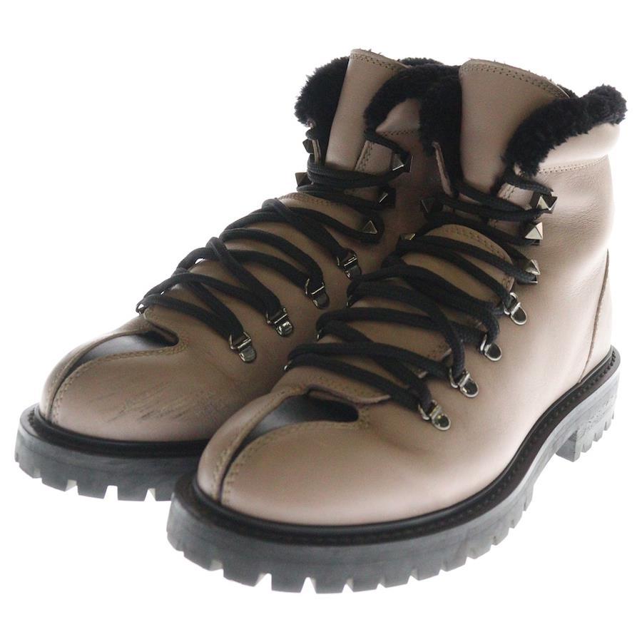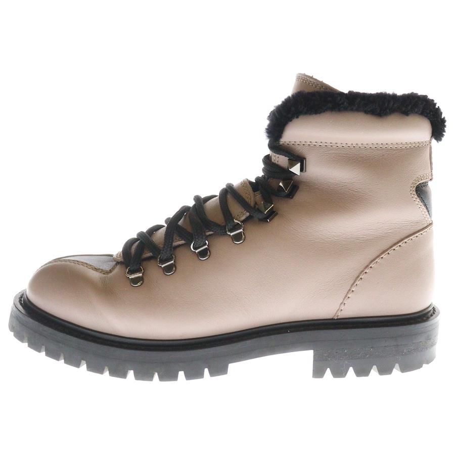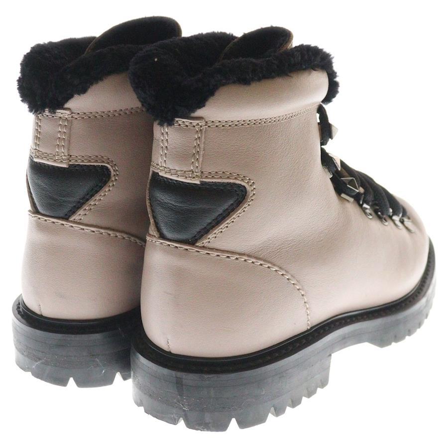 [モデル]レースアップ レザームートンブーツ シューズ ピンク レディース