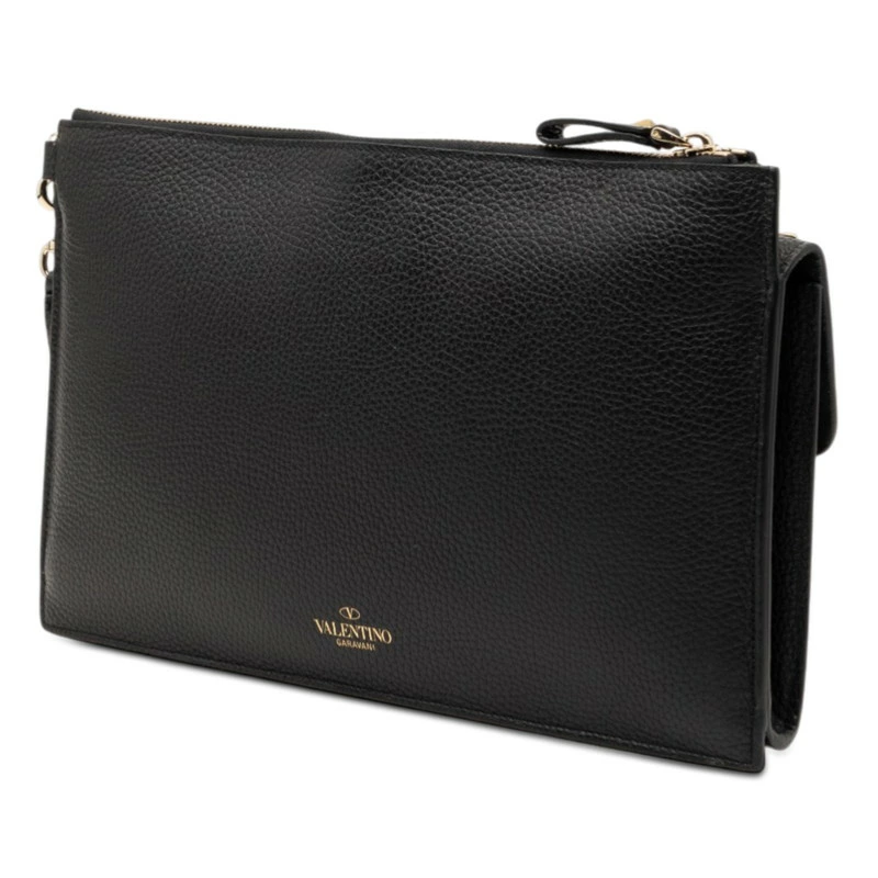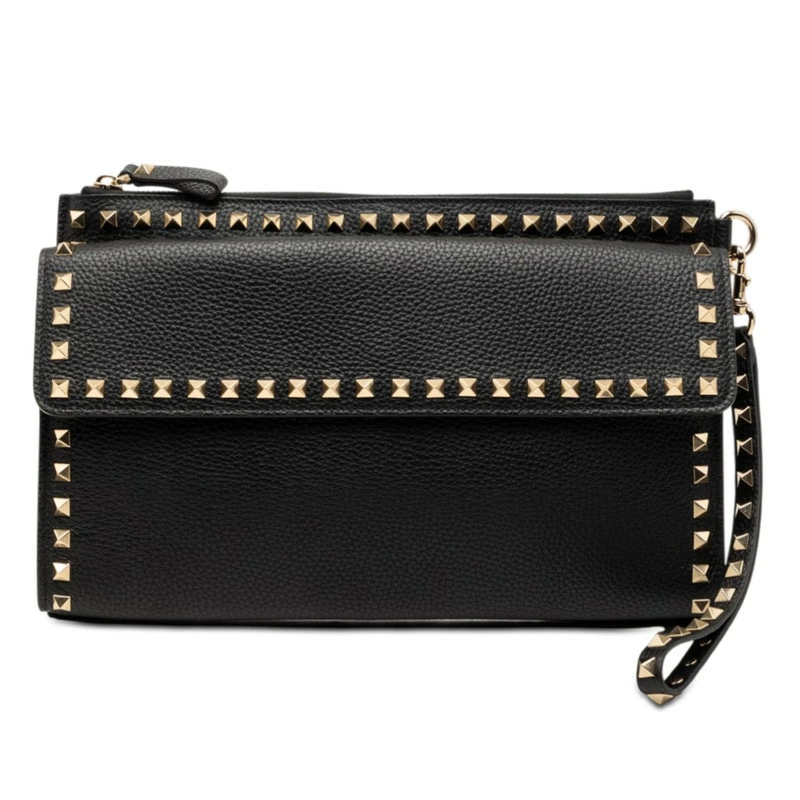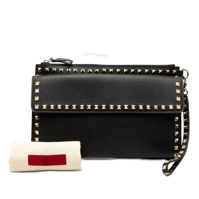 - ヴァレンティノ ロックスタッズ クラッチバッグ セカンドバッグ ブラック レザー レディース VALENTINO 【中古】