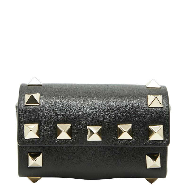 - ヴァレンティノ ロックスタッズ ポーチ マナーポーチ 小物入れ ブラック レザー レディース VALENTINO 【中古】