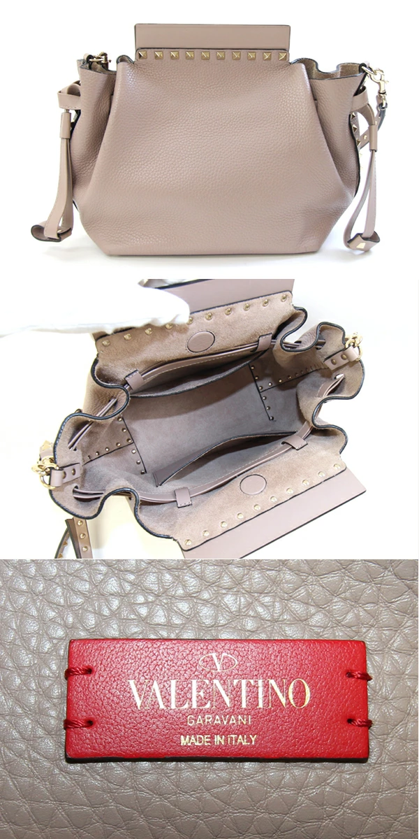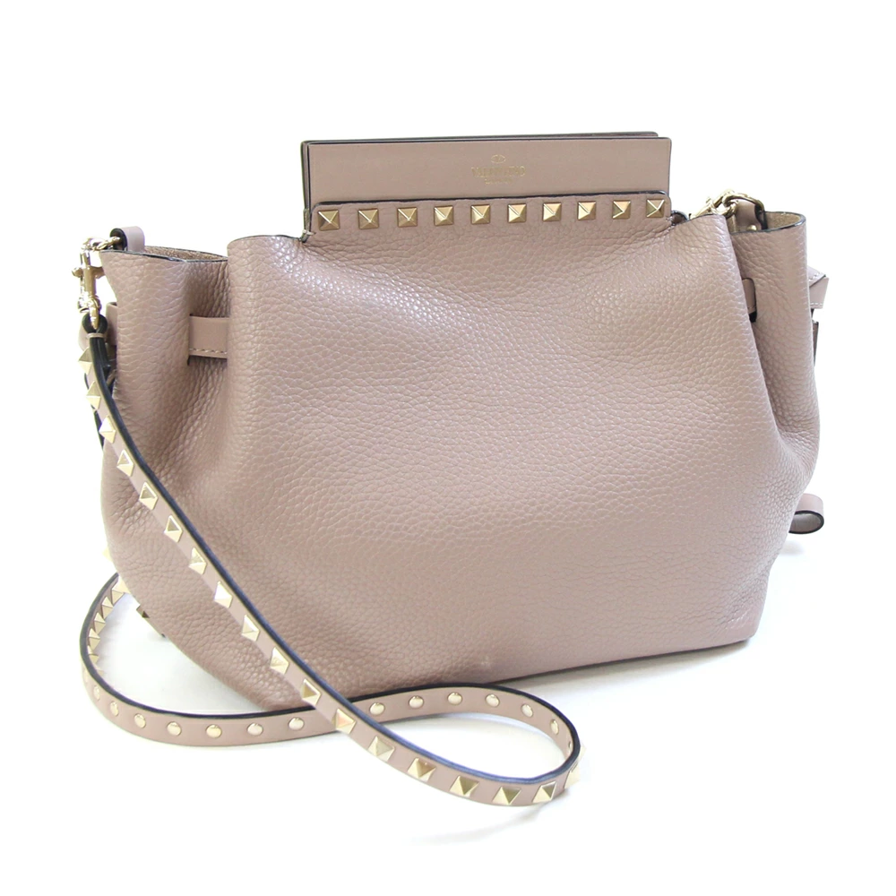 Valentino Rockstud Shoulder Bag SW2B0E79YRK Pink Beige Leather Crossbody Bag for Women, Pre-Owned