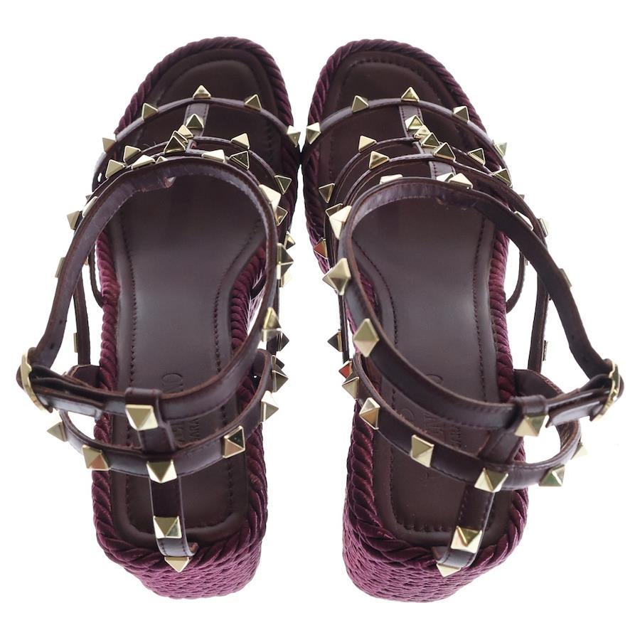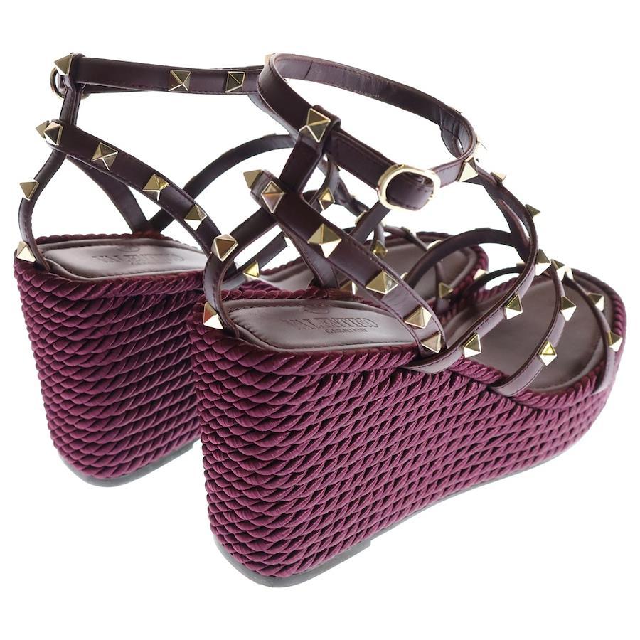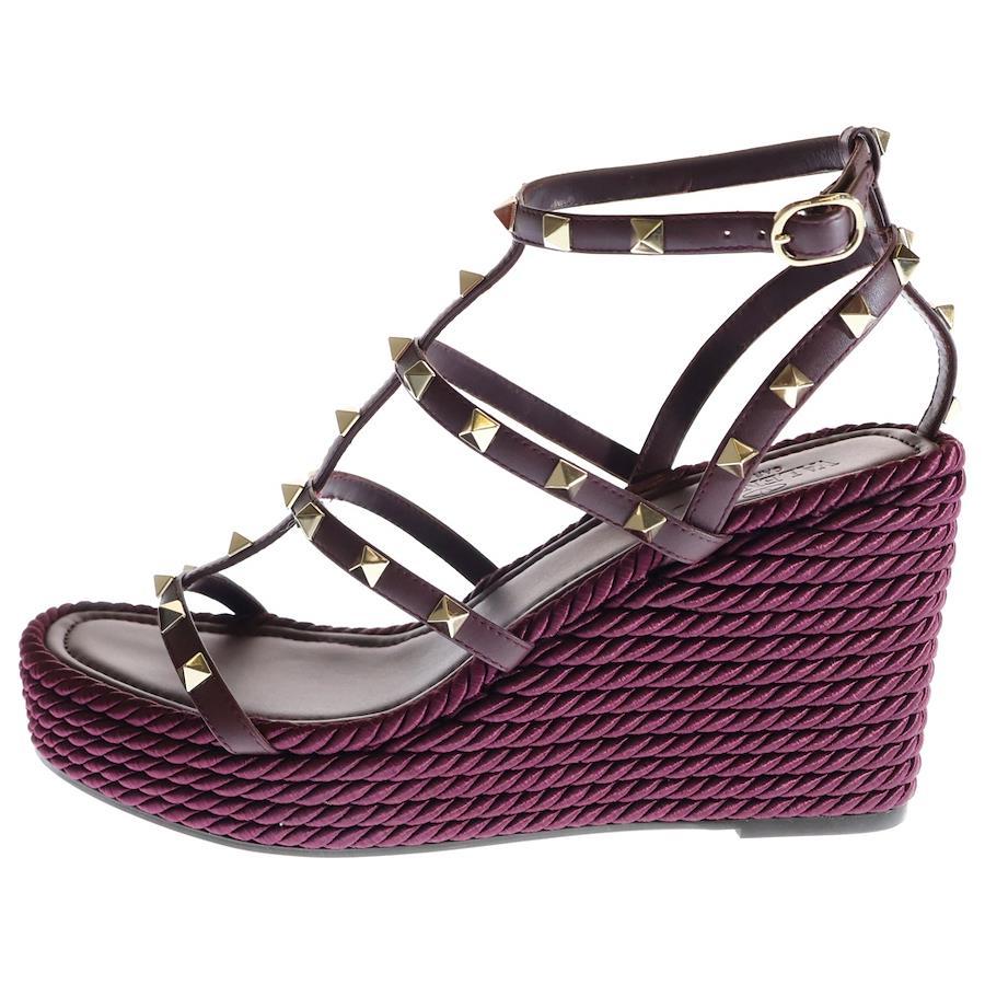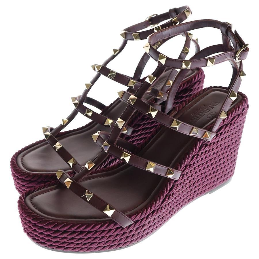 Valentino Rockstud wedge leather strap heeled sandals in purple, women's size RW2S0F95BAE, size 41.
