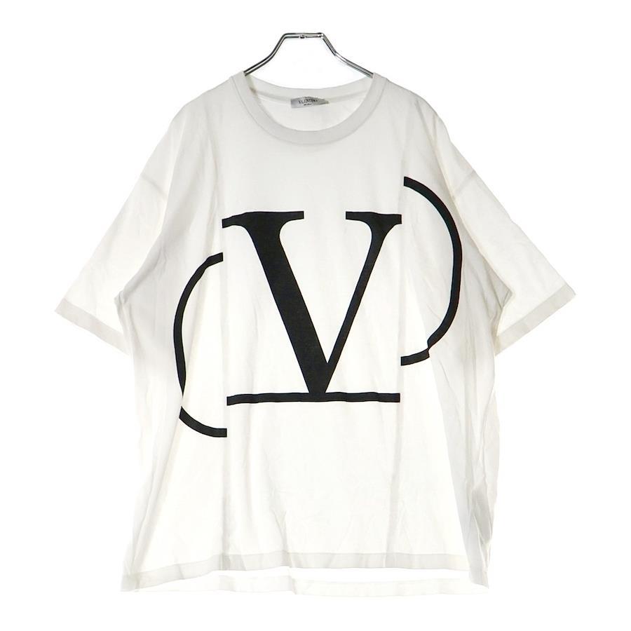 [モデル]Vロゴ デコンストラクトプリント クルーネック コットン 半袖Tシャツ カットソー ホワイト RV0MG01SLIA