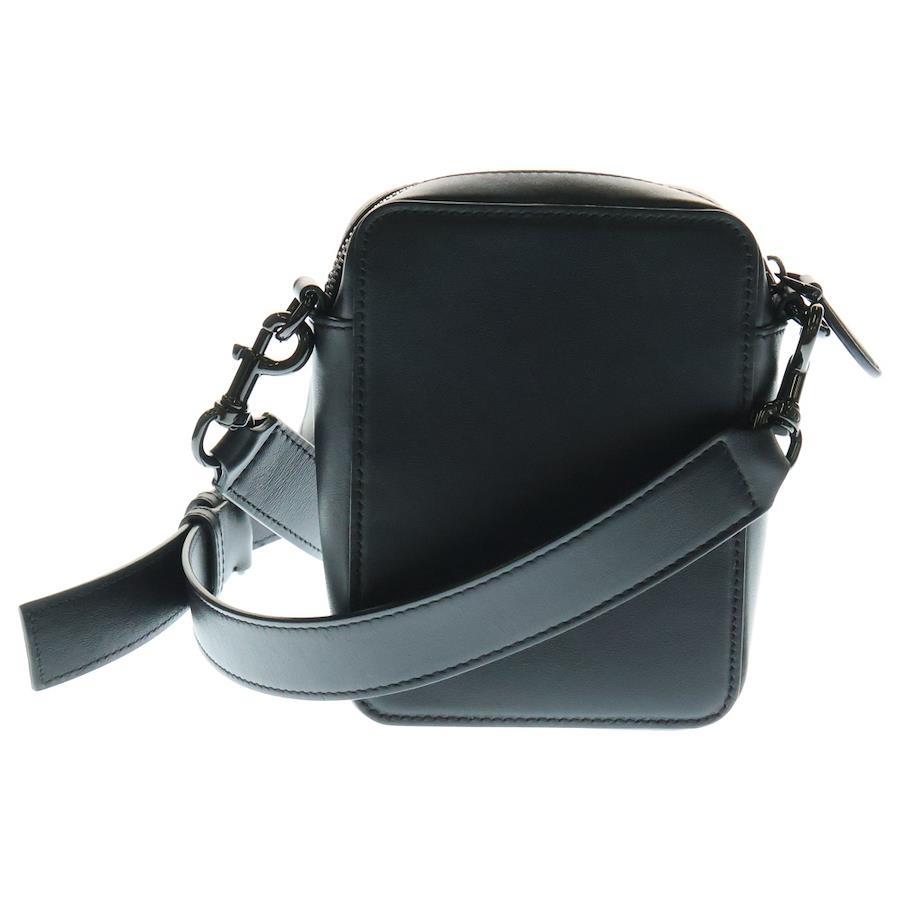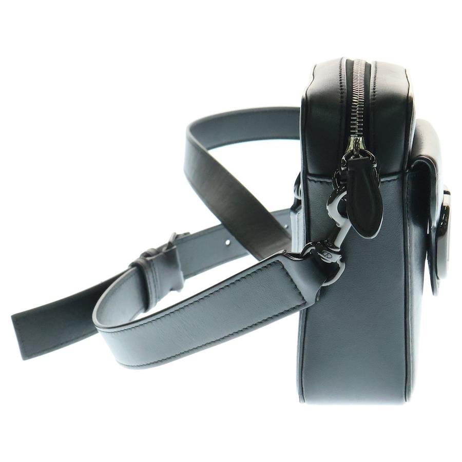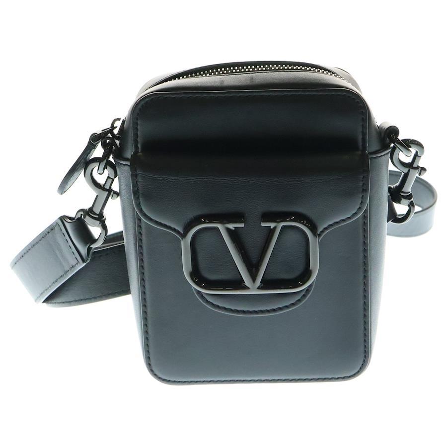[モデル]Vロゴ ショルダーバッグ クロスボディーバッグ ミニバッグ ブラック ブラック金具 レザー