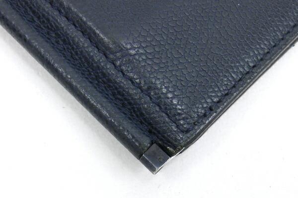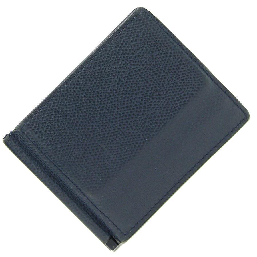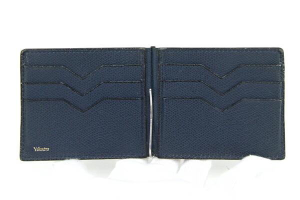 ヴァレクストラ二つ折り札入れマネークリップネイビーレザー中古札入れカードケースコンパクトウォレットメンズ男性Valextra