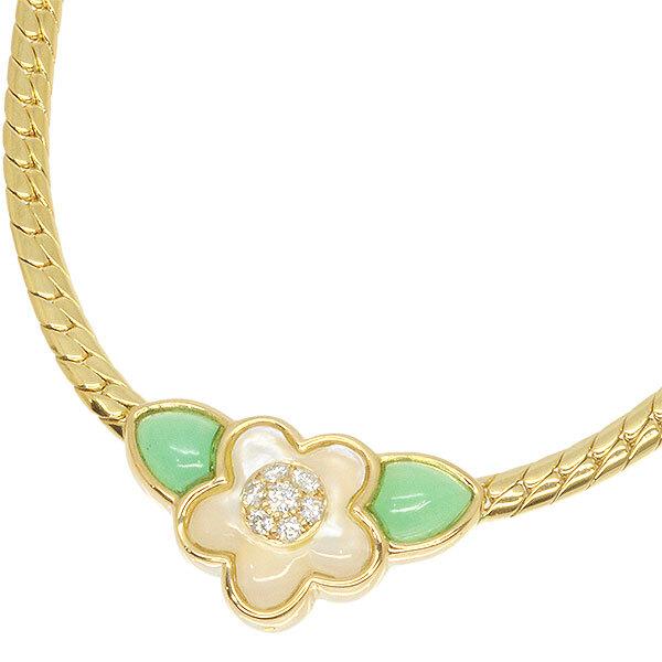 Van Cleef & Arpels Flower Shell Chrysoprase and 0.23ct Diamond Necklace in 18K Yellow Gold