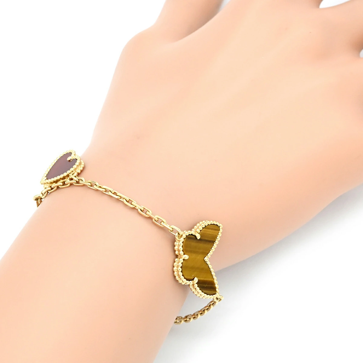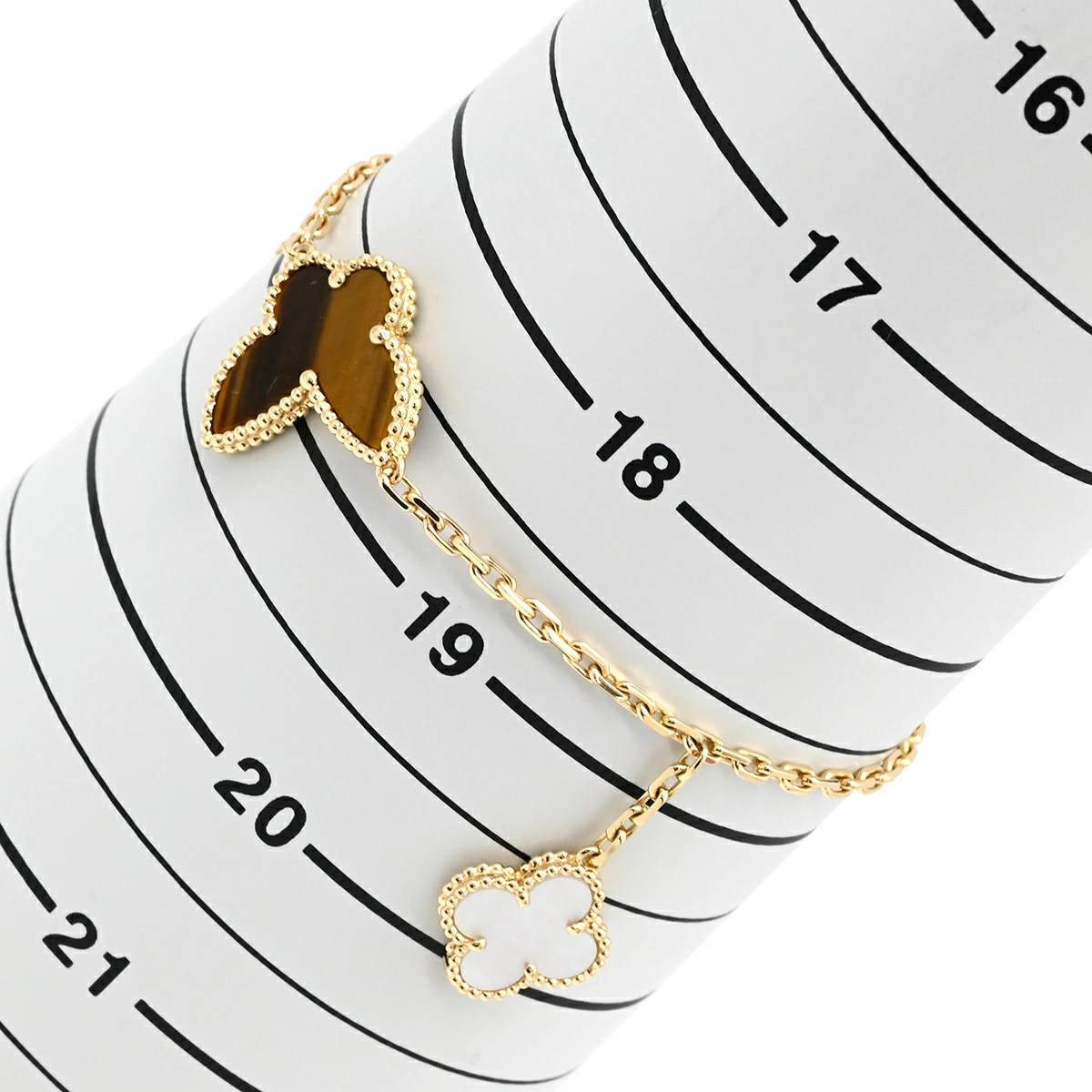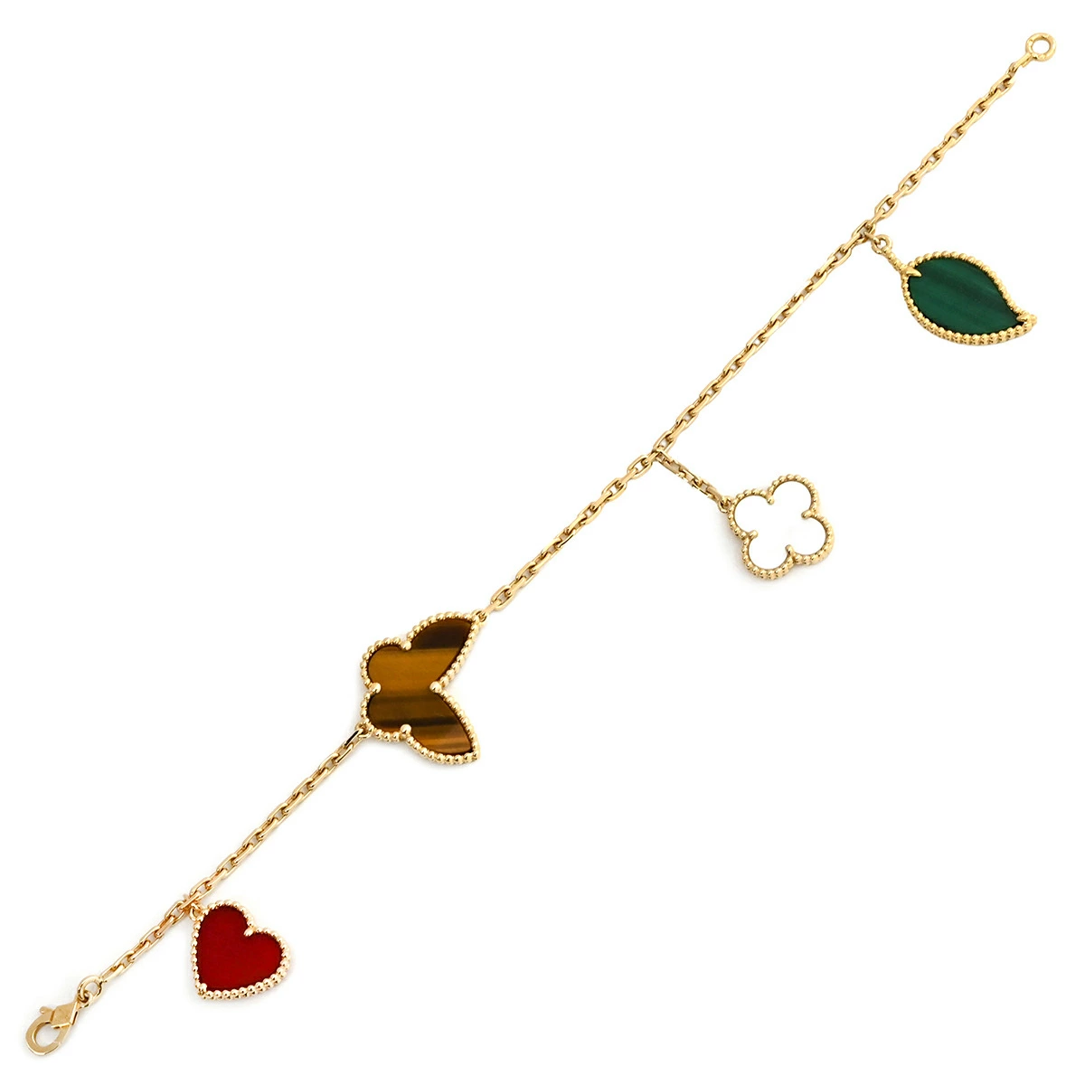 ヴァンクリーフアーペル Van Cleef & Arpels ブレスレット ラッキー アルハンブラ 4モチーフ アルハンブラ K18YG マラカイト マザーオブパール タイガーズアイ カーネリアン イエローゴールドXマルチカラー 赤 白 緑 茶 マルチストーン 18K 18金 750YG VCARD79600 レディース 【箱】 【中古】
