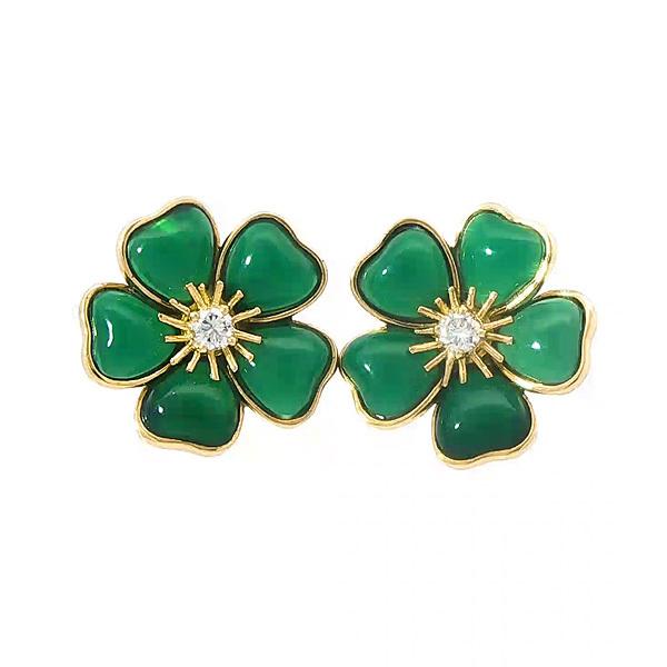 Category: JewelryType: EarringsBrand: Van Cleef & ArpelsSize: 19.5 x 18.2 x 11.4mmGemstone: Chrysoprase/DiamondStamp: VCA B3***** D 0.26CT x 2 OR 750Weight: 9.4gMaterial: 18K Yellow GoldList Price: -Accessories: Original box and repair certificateCondition: A
