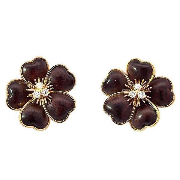Van Cleef & Arpels Naval Letterwood 0.86ct Diamond Earrings in 18K Yellow Gold