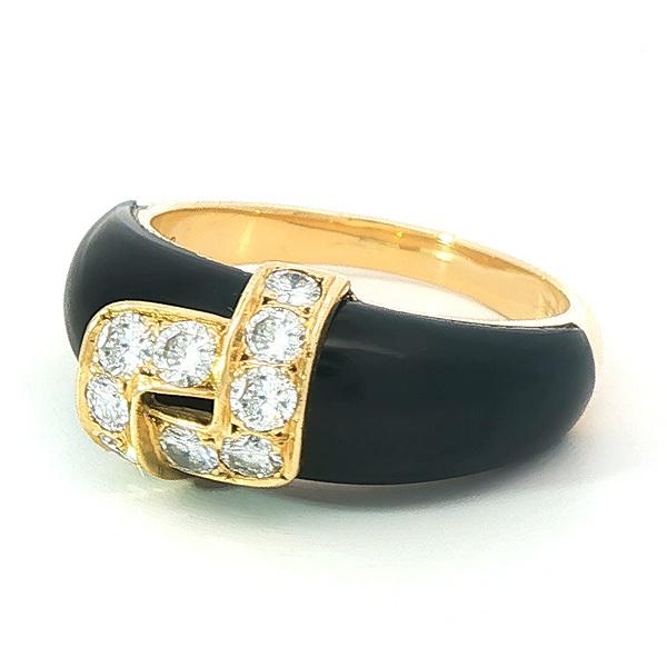 Van Cleef & Arpels Onyx and Diamond 0.45ct Ring, 18K Yellow Gold, Size 13