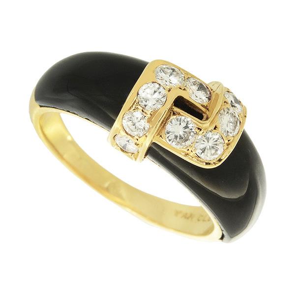 Category: JewelryType: RingBrand: Van Cleef & ArpelsSize: 13Width: 8.7mmGemstone: Onyx/DiamondStamp: VAN CLEEF & ARPELS 18Kt 0.45CT C5******Weight: 5.6gMaterial: 18K Yellow GoldList Price: -Accessories: Original box and repair certificateCondition: A