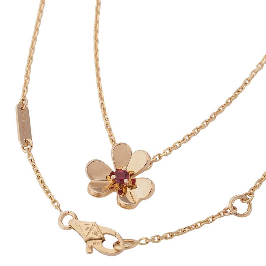 Van Cleef & Arpels 1-Piece Ruby Frivole Mini Model Necklace VCARP7S800 18K PG (Domestic Authenticity) with Box and Certificate of Authenticity