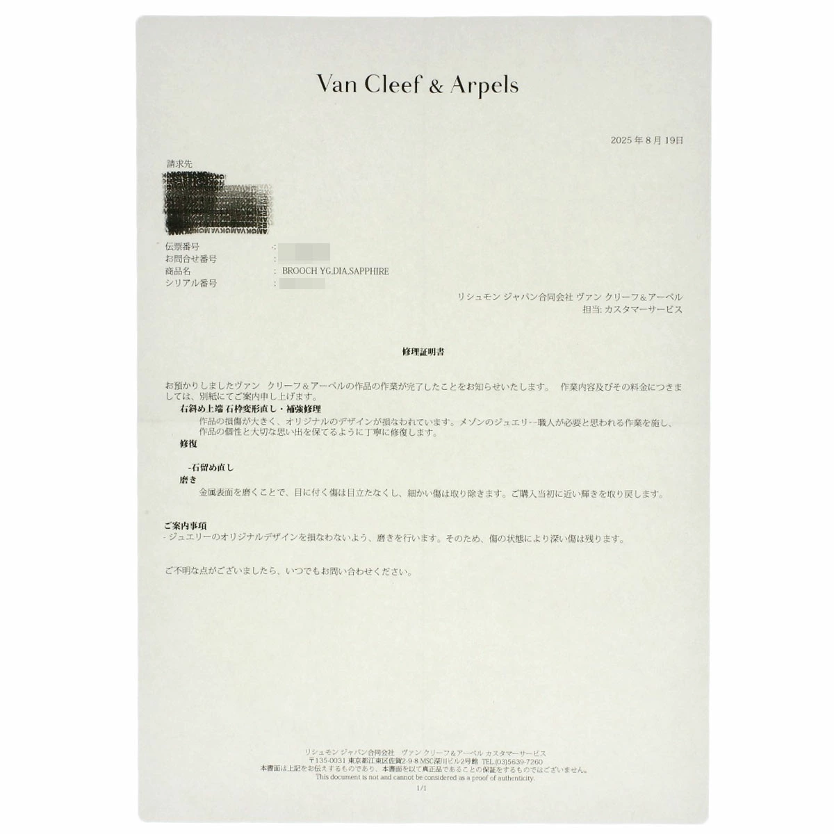 | 付属品 | ヴァンクリーフ&アーペル修理証明書 |