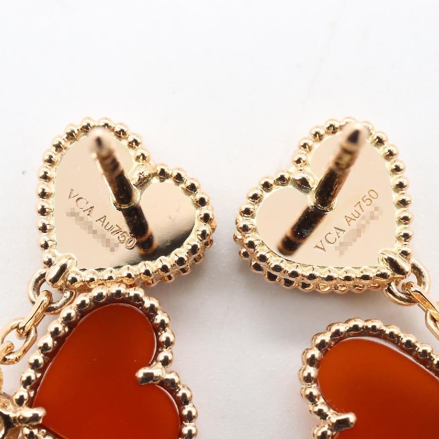Condition: ASlight signs of wear, scratches, scuffs, and stains are visible.Slight signs of wear are visible. *This item has been polished, but minor scratches may remain. Please note.Brand: Van Cleef & ArpelsProduct Name: Sweet Alhambra Heart EarringsModel Number: VCARN5PP00Color: Clear / RedMaterial: Diamond and Carnelian / 18K Gold (Pink Gold) with Diamonds and CarnelianSize: Approx. 25mm x 18mmWeight: Approx. 6.4gSpecifications: -Accessories: Repair Certificate*Items not listed in the accessories section are not included.*If an outer box, dust bag, warranty card, etc. are included, their condition is not included in the product rating.Note: The individual serial number is not displayed for privacy reasons. Although the item is actually engraved, please note that the color displayed on your screen may differ from the actual color depending on your display environment and settings.