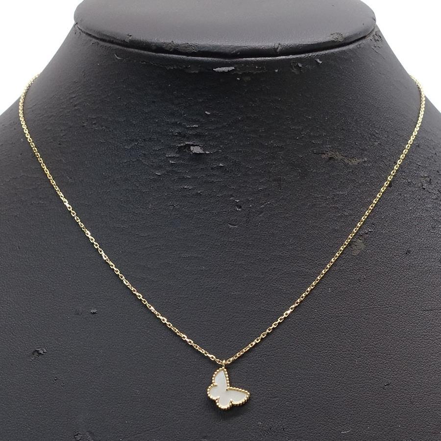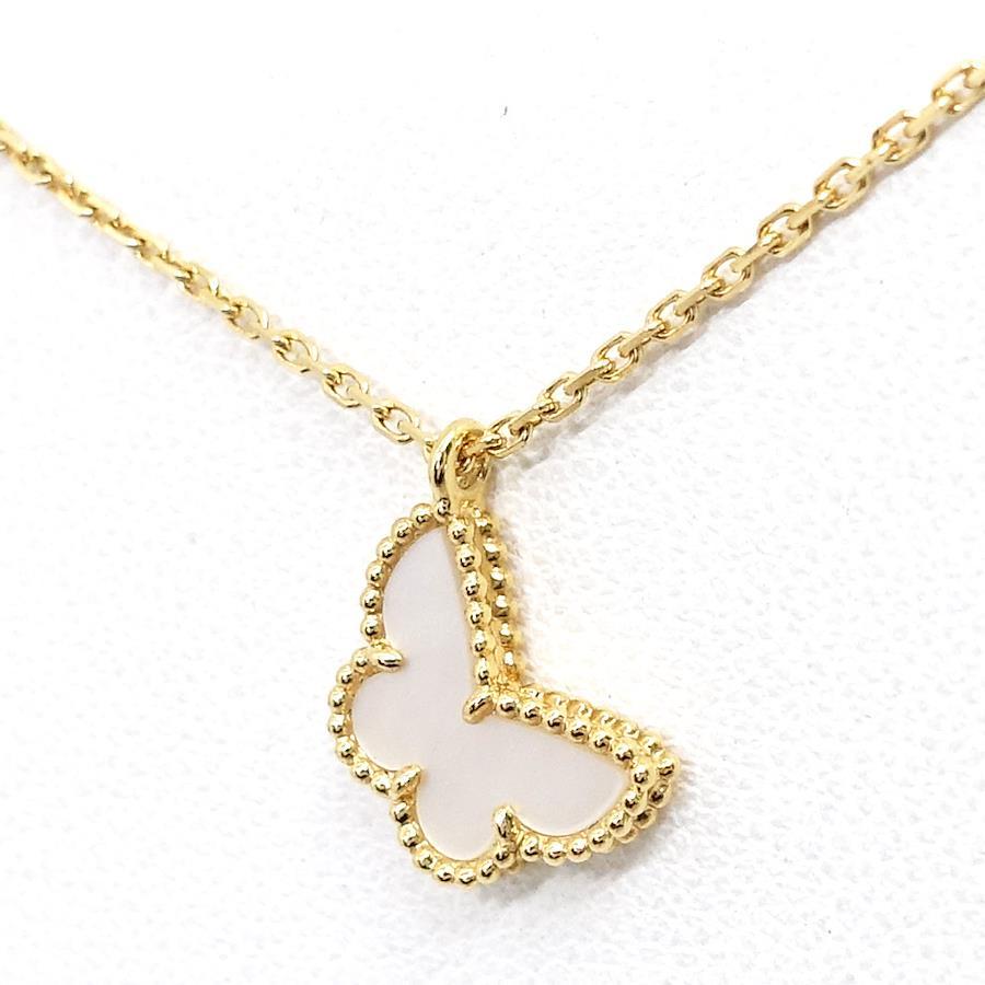 Van Cleef & Arpels 18K Yellow Gold Sweet Papillon Necklace MOP White Shell 750YG VCARF69300 Jewelry