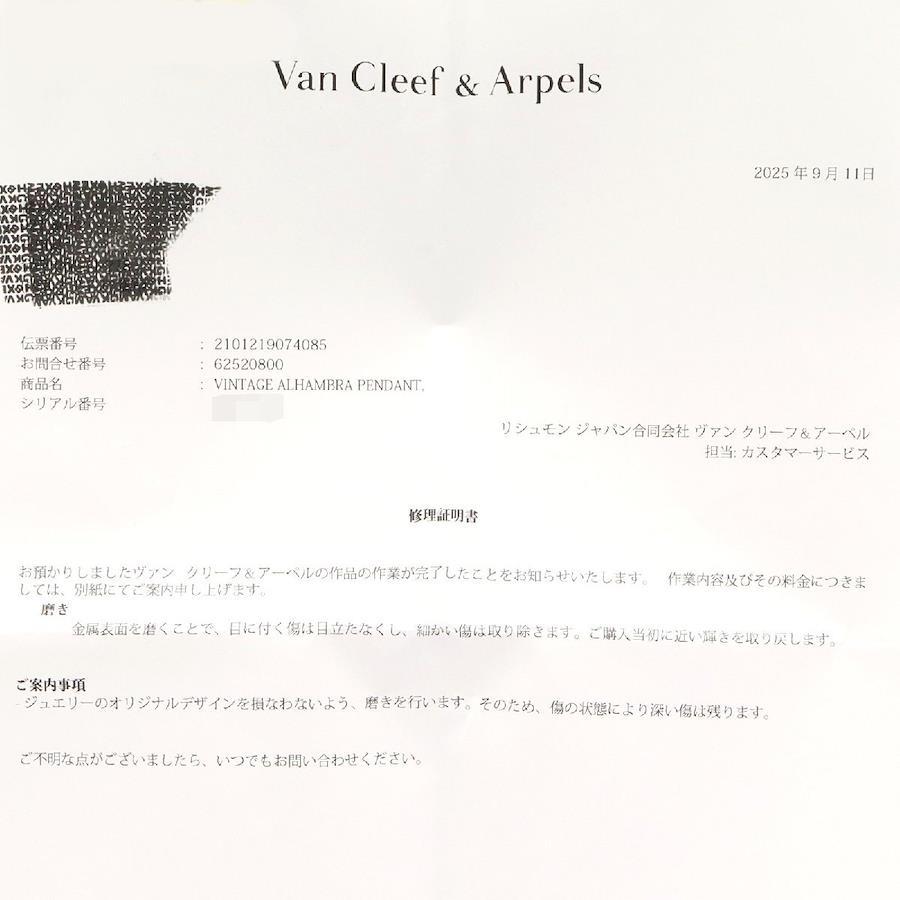 Condition: ASlight signs of wear, scratches, scuffs, and stains are visible.Slight signs of wear are visible. While the item has been polished, minor scratches may remain. Please note.Brand: Van Cleef & ArpelsProduct Name: Vintage Alhambra Diamond NecklaceModel Number: VCARA45300Color: ClearMaterial: Diamond, 18K Yellow Gold (K18) x DiamondSize: Neck Circumference: Approx. 37.5cm/16.5inMotif Width: Approx. 5.6mm x Height: Approx. 5.6mm (Including setting, bail, etc.)Weight: Approx. 5.6gSpecifications: NoneAccessories: Repair CertificateItems not listed in the accessories section are not included.Items such as the outer box, dust bag, and warranty card are not included in the product rating.Note: The individual serial number is not displayed for privacy reasons. Although the item is actually engraved, please note that the color displayed on your screen may differ from the actual color depending on your display environment and settings.