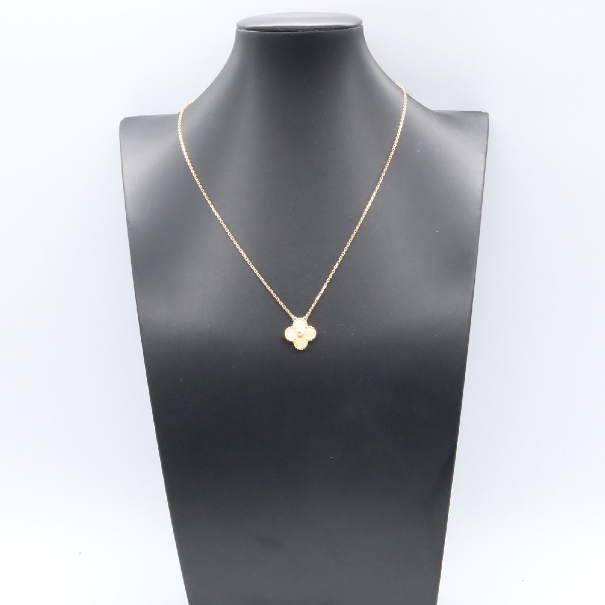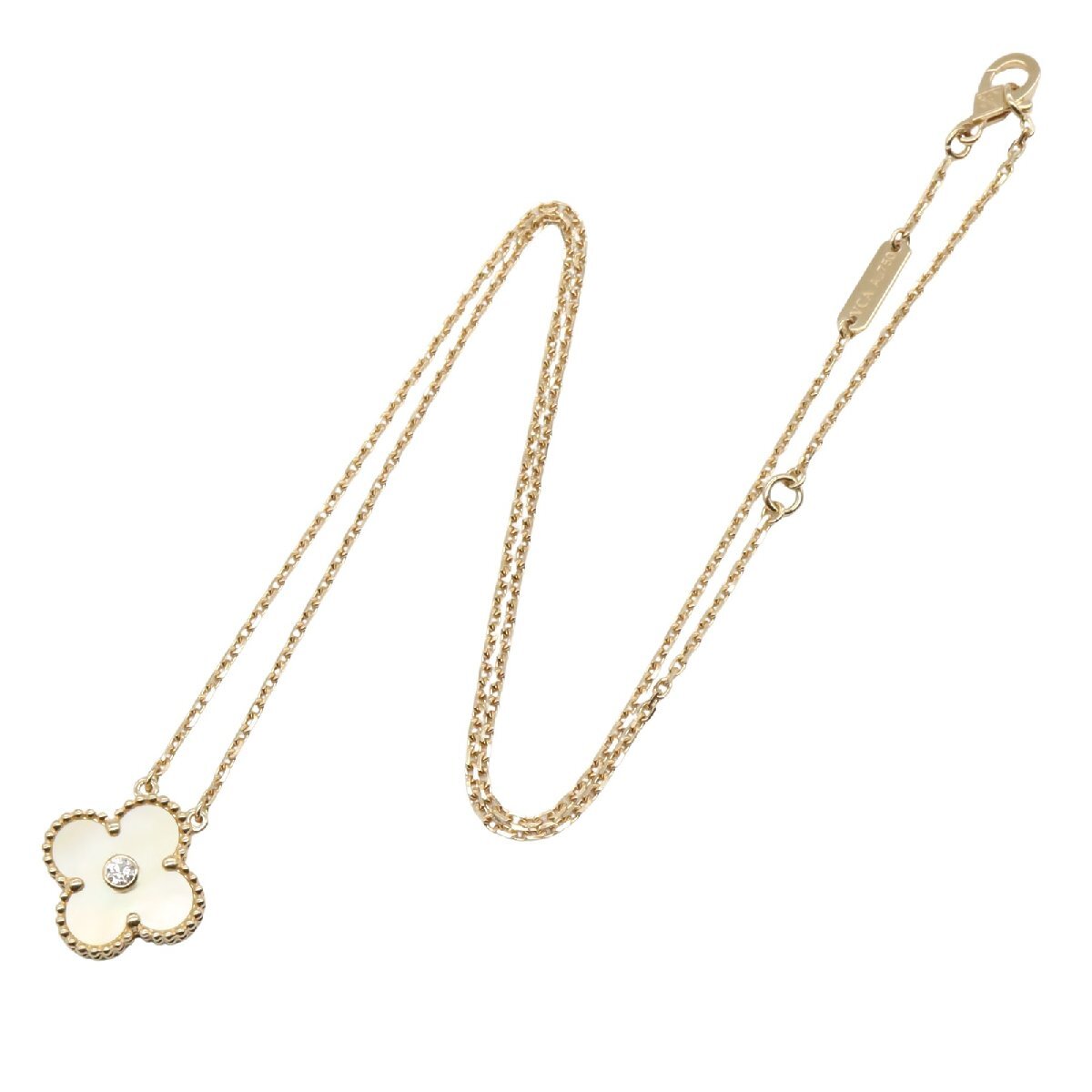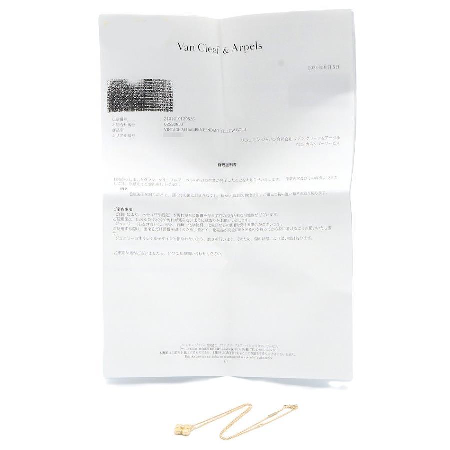 Condition: ASlight signs of wear, scratches, scuffs, and dirt.Brand: Van Cleef & ArpelsProduct Name: Vintage Alhambra Necklace Yellow MOPColor: Clear / YellowMaterial: Diamond Yellow Mother-of-Pearl / 18K Yellow Gold with Diamonds and Yellow Mother-of-PearlSize: Neck Circumference: Approx. 37.5cm / 42cmMotif Width: Approx. 15mm x Height: Approx. 15mm [Including the setting and bail]Weight: Approx. 6.5gSpecifications: NoneAccessories: Repair Certificate*Items not listed in the accessories section are not included as a general rule.*If the outer box, dust bag, warranty card, etc. are included, their condition is not included in the product rating.Note: 2018 ChristmasIndividual manufacturing numbers (serial numbers) are not displayed for privacy reasons. Although the item is actually engraved, please note that the color displayed on your screen may differ from the actual color depending on your display environment and settings.