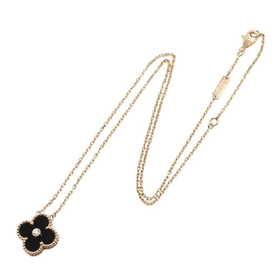 Condition: ASlight signs of wear, scratches, scuffs, and dirt are visible.Brand: Van Cleef & ArpelsProduct Name: Vintage Alhambra Onyx Necklace 1PDColor: ClearMaterial: Onyx Diamond / K18PG (Pink Gold) x Diamond x OnyxSize: Neck Circumference: Approx. 38.5cm/43cmMotif Width: Approx. 15mm x Height: Approx. 15mm [Including setting, bail, etc.]Weight: Approx. 6.4gSpecifications: -Accessories: Repair Certificate*Items not listed in the accessories section are not included as a general rule.*If an outer box, dust bag, warranty card, etc. are included, their condition is not included in the product rank.Note: For privacy reasons, the individual serial number is not displayed. However, it is engraved.Other: Colors displayed on your screen may differ from the actual color depending on your display settings. Please be aware of this.