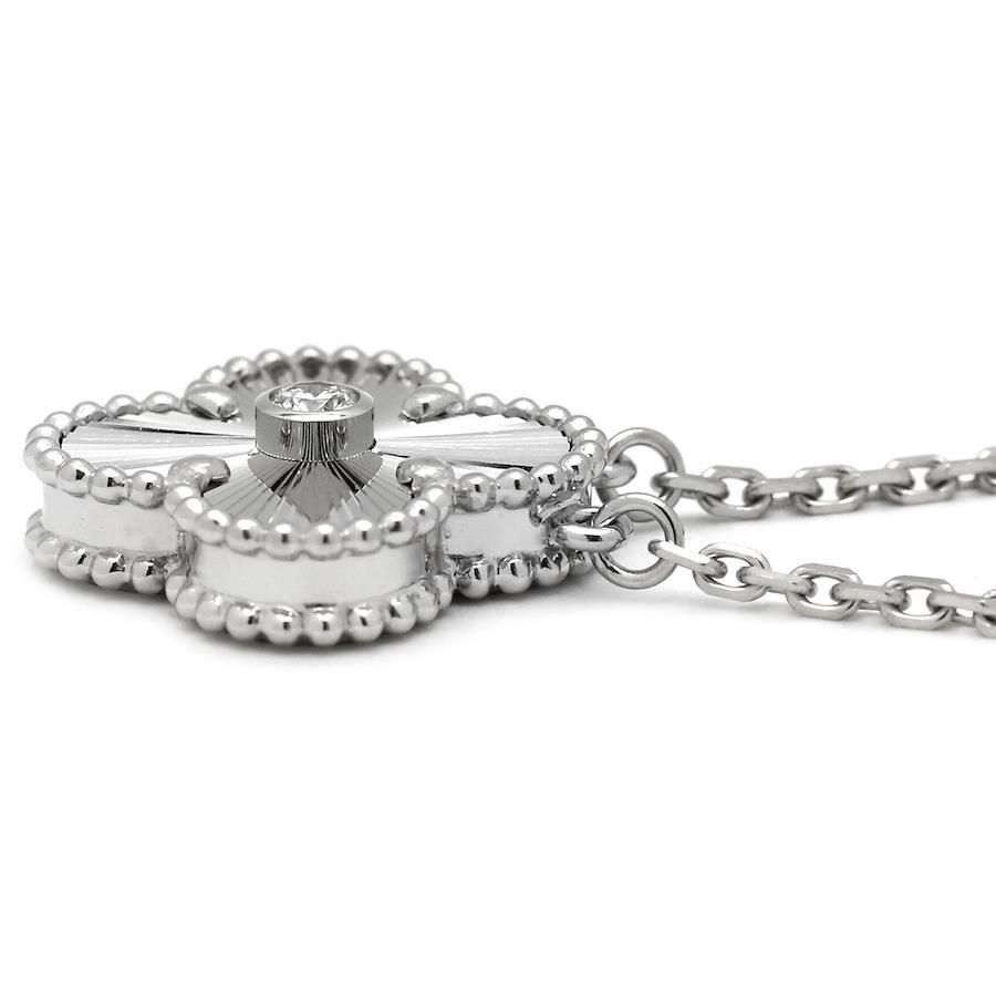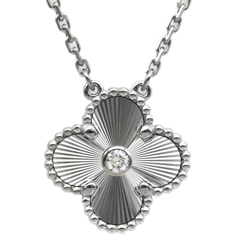 Van Cleef & Arpels Vintage Alhambra Necklace, 18K White Gold with Diamonds, 2020 Holiday Limited Edition, Guilloched Finish, VCARP6L800, Women's [Repair Certificate Included] Classic, Popular, Excellent Condition, Pre-Owned