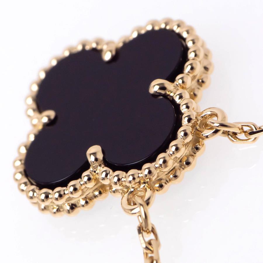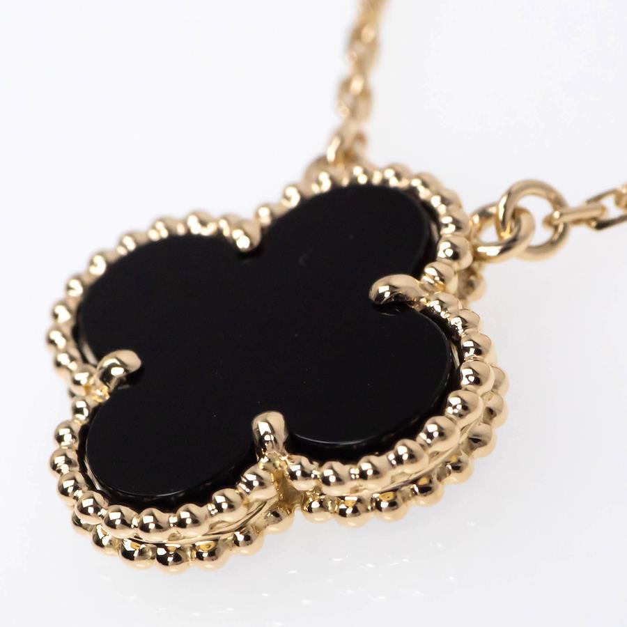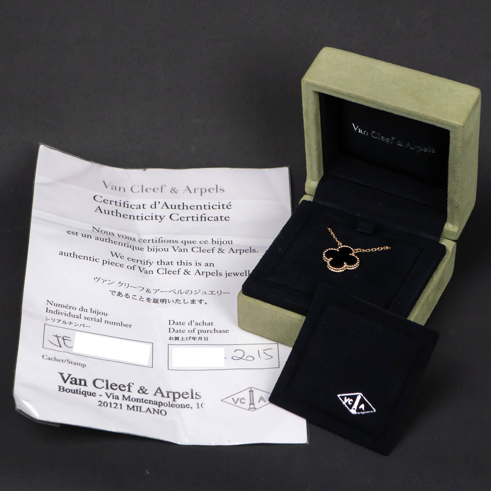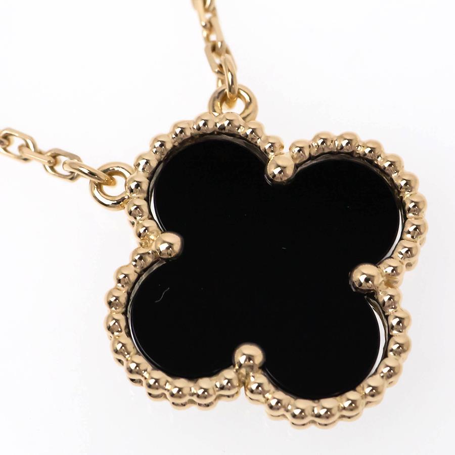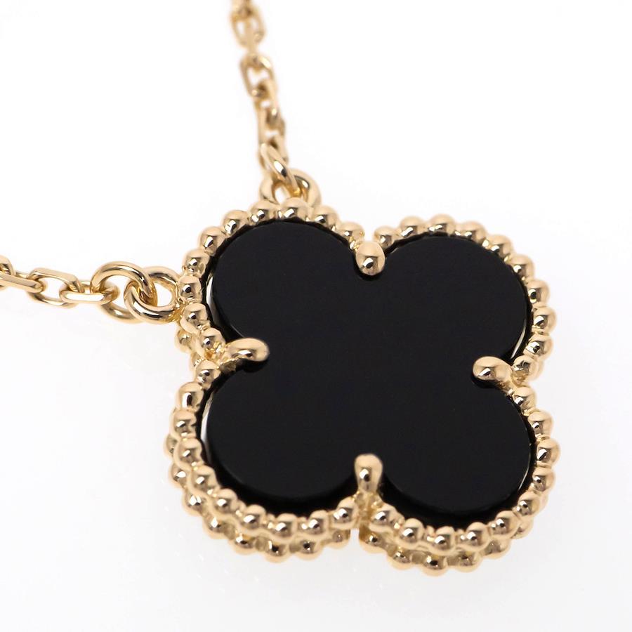 Product Rank: AProduct Condition: This item has been polished at our designated jewelry workshop.Light polishing was used to maintain the proportions of the item. While there may be some minor scratches that cannot be removed, the overall finish is beautiful.Please refer to the images to determine the condition, but please feel free to ask any questions or contact us with any concerns.*While we handle this item with the utmost care, it is a display item in our store, so there may be very slight scratches or scuffs.*The texture and color may appear different from the actual item depending on the photography environment and your monitor settings.Brand: VAN CLEEF & ARPELSProduct Name: Vintage Alhambra Pendant NecklaceModel Number: VCARA45800Serial No.: JE******Stamp: VCA Au750 / Serial Number / HallmarkMaterial: 18K Yellow GoldStone: OnyxColor: GoldSize: Chain: Approx. 41.5cm x 37.5cmMotif: Approx. 15mm W x 15mm HWeight: Approx. 4.9gSuggested Retail PriceAccessories: Original case (inner box only)Warranty Card (2015 / Stamped by an authorized international retailer)*All items shown in the images are included.
