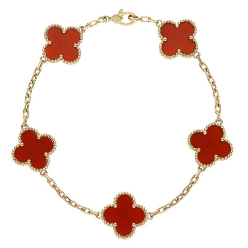 Van Cleef & Arpels Vintage Alhambra VCARD35500 18K Yellow Gold 5-Piece Carnelian Bracelet (Yellow Gold and Red, 11.48g) [919052] [SB01] [Accessory] [Pre-owned] bb384#rinkan*B