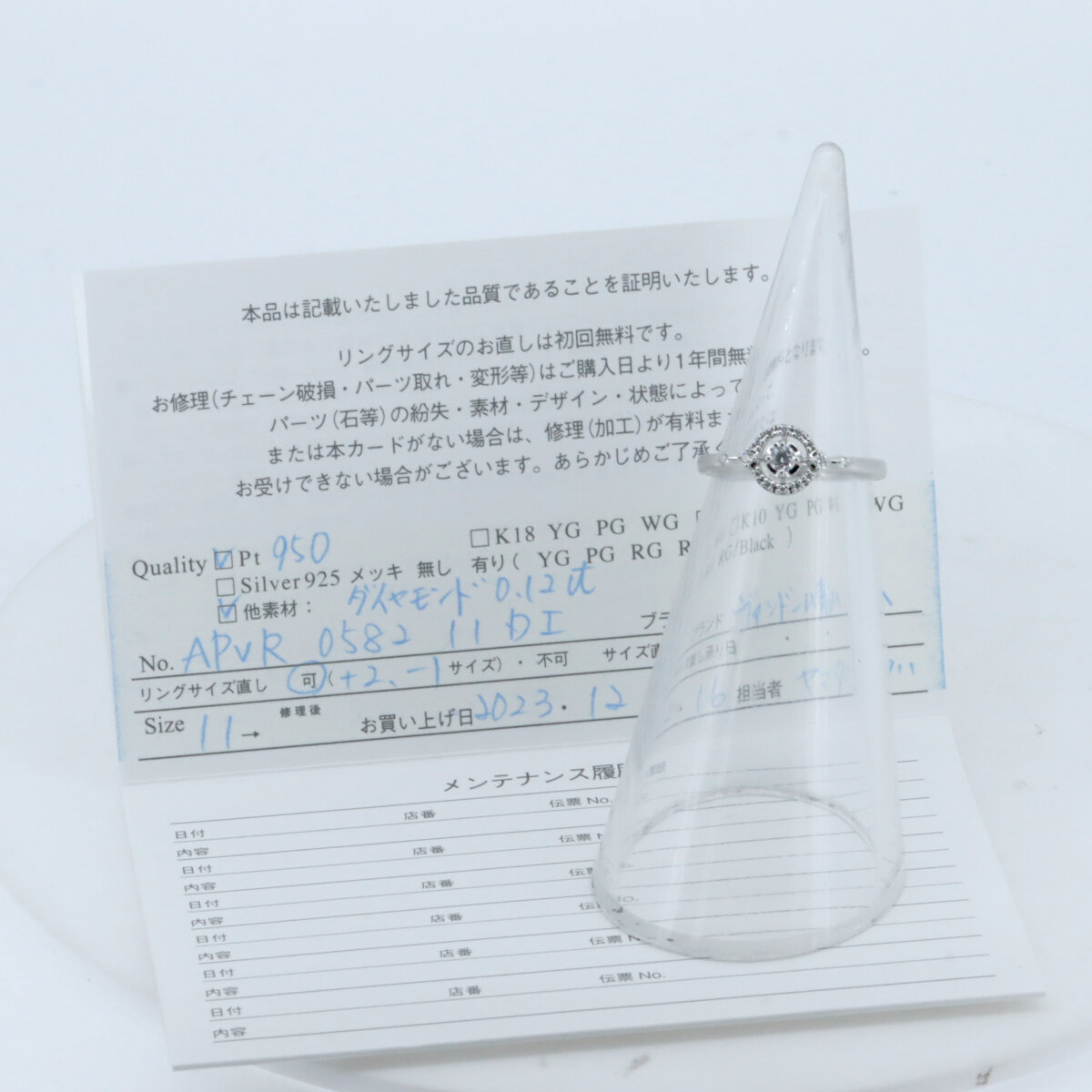 ギャランティカード(日付あり:2023/12/16 型番:APVR058211DI)