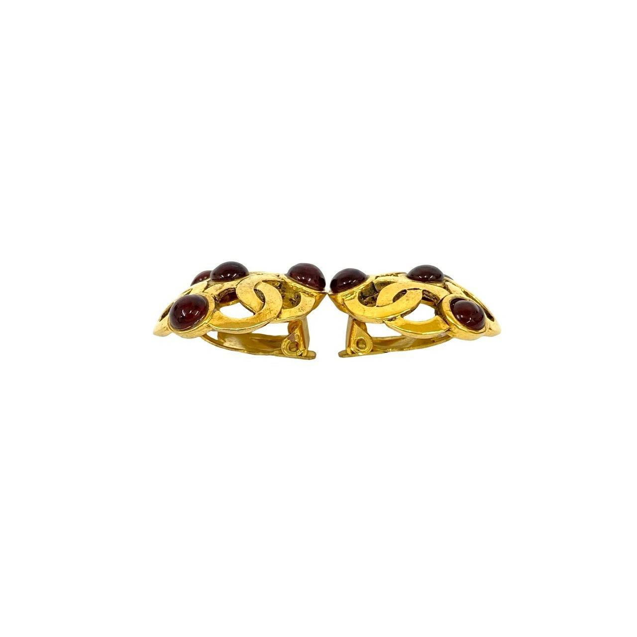 Very good condition, rare item with comments. 25 CHANEL vintage Gripois earrings and ear cuffs in gold and red. 85162 [pre-owned]