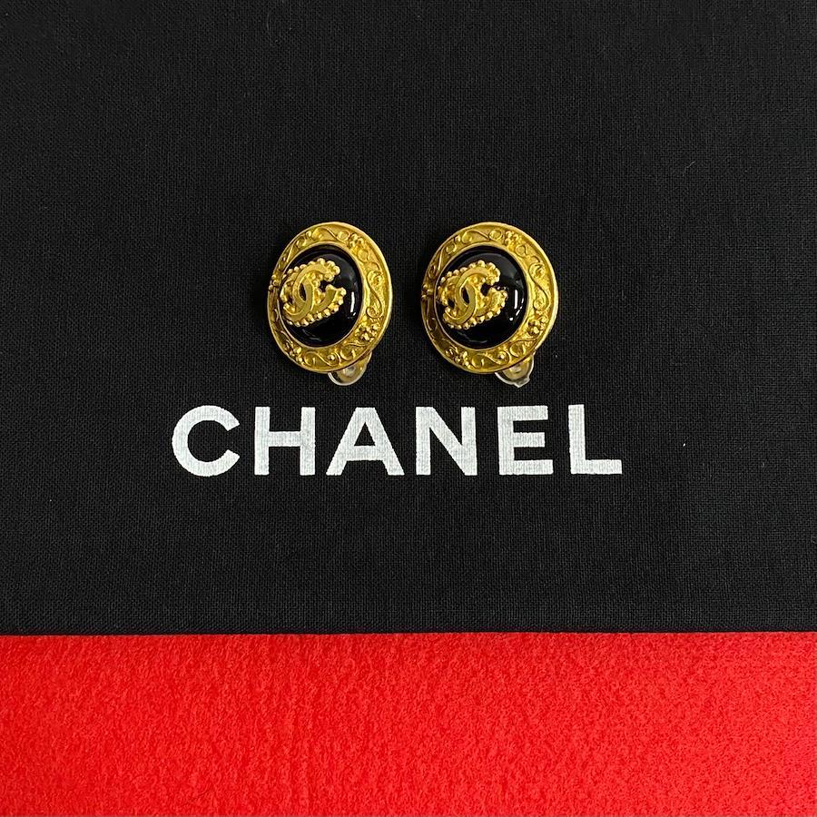 Very good condition, rare item with comments. 96A CHANEL Vintage Coco Mark Earrings/Cuff, Gold/Black, 23181 [Pre-owned]