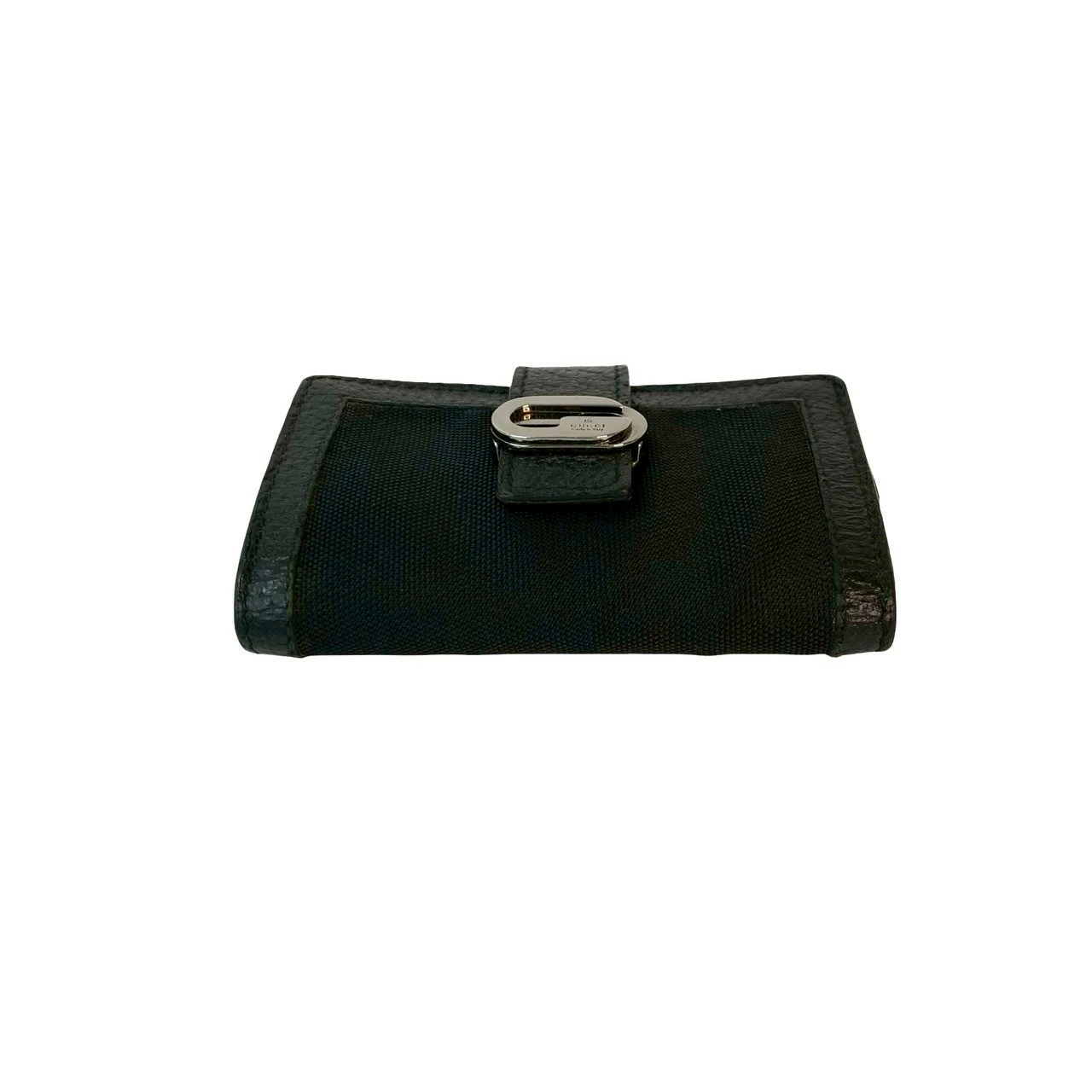 Very rare, mint condition GUCCI G logo engraved hardware, genuine leather and nylon tri-fold key case, black, key holder, 34966 [pre-owned]