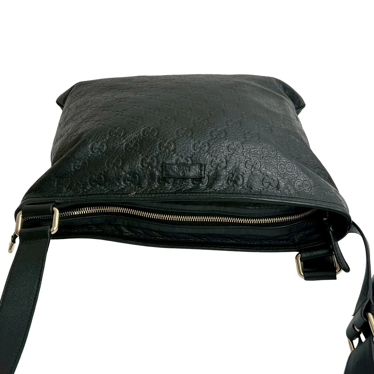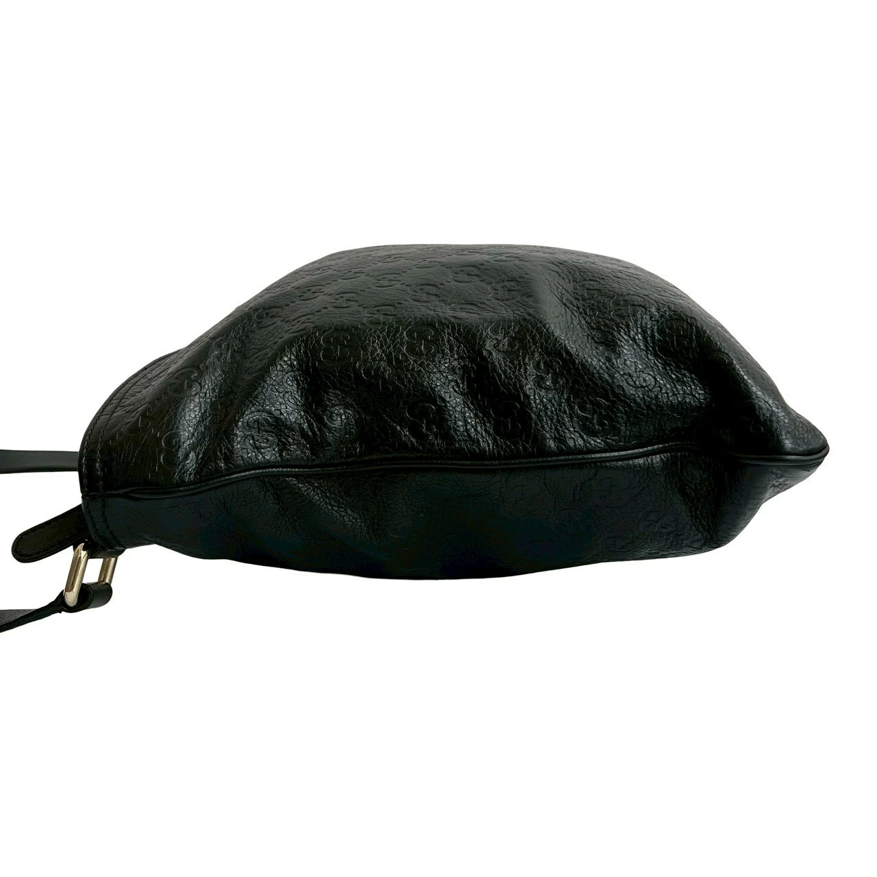 Very rare, mint condition GUCCI Shima GG logo engraved genuine leather shoulder bag/pouch/sacoche/body bag in black (57917) [pre-owned]
