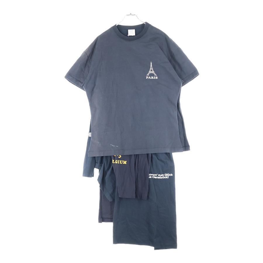 [モデル]17AW BLACK PRINTED COTTON LAYER T-SHIRT DRESS 再構築レイヤードTシャツワンピースWAH18DR10 ブラック レディース