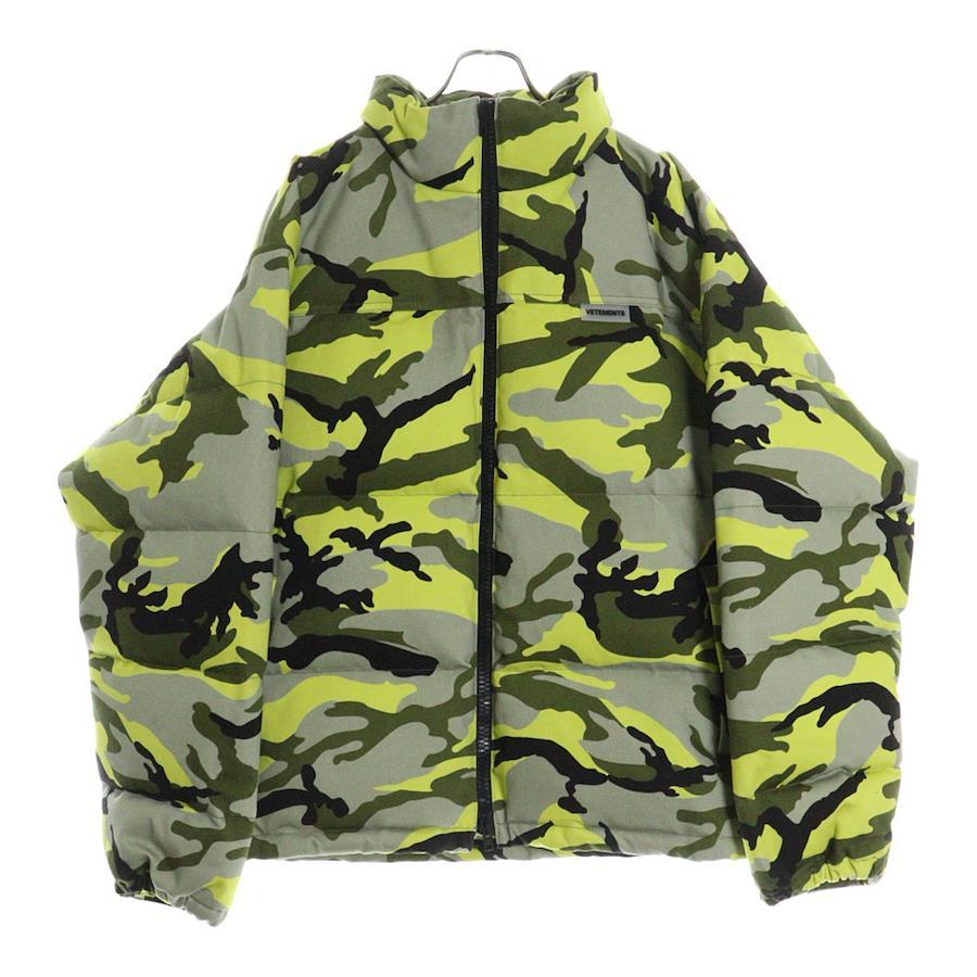 Vetements 2022AW NEON CAMO LOGO PUFFER JACKET UA53JA600C Neon Camo Logo Down Jacket, Size S, Yellow