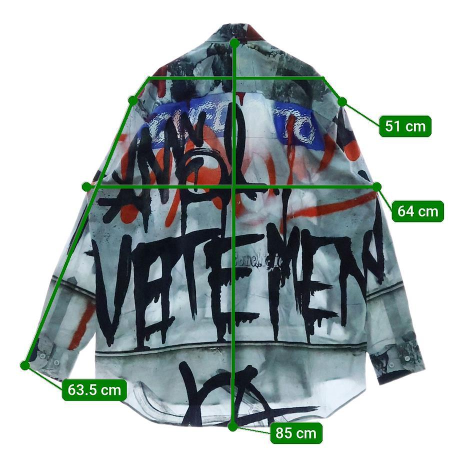 ■商品情報[商品番号]3825F190019[ブランド]VETEMENTS(ヴェトモン)[モデル]23AW GRAPHIC LS SHIRT グラフィック 長袖シャツ UE54SH340G マルチ[サイズ]着丈:85センチ 身幅:64センチ 肩幅:51センチ 袖丈:63.5センチ表記サイズ:XS■状態・コンディション[状態ランク]ランク B使用感有り全体的に毛羽立ち有り