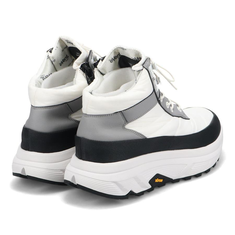 | VIBRAM防寒防水スニーカー 【素材】 撥水素材の生地と人工皮革を使用し、3M社のシンサレートを全体に備えた高機能仕様。 【デザイン】 ムーンブーツ(スノーブーツ)を題材にフープディドゥ独自の解釈で再構築したウィンターブーツ。撥水性能を持った生地とシンサレート素材で水に濡れにくく、暖かい空気を逃がしにくい構造でありながら、eVentライニング素材で湿気を逃しなら外からの水の侵入を防ぐ、あらゆる効果を網羅した1足。 船のような形をした歩行をアシストしてくれるVIBRAMソールは耐久性、防滑性ともに優れています。 3時間程水につけても水の侵入を防ぐ防水機能。※使用頻度により効果が異なる場合がございます。 【サイズ】 ※普段革靴で25.5cm、ライニングやインソールにクッションが入っているスポーツ系スニーカーで26.5〜27.0cmを使用するスタッフで<42/26.0cm>がちょうどよかったです。中綿が入っている関係上足入れは少々タイトフィットです。 ※サイズ感は、個人差がございますのであくまで参考程度にお考え下さい。 ■ブランド:whoop'-de-doo' destruction ■カラー:ブラック、ホワイト ■アッパー素材:生地/人工皮革 ■底材:ラバー(ヴィブラム社製) ■ヒール:約5.0cm ■ソール:約4.5cm ■重さ(片足):約455g ■製法:セメント ■中国製 *上記は全て25.5cmで計測した数値です。 *多少の誤差が生じる場合がございますので予めご了承下さい。 whoop de doo co.,ltd whoop'-de-doo' フープディドゥ |
