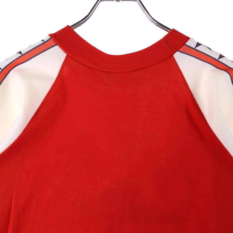 [モデル]70-80s Velva Sheen 袖切り替えデザインフロントプリントクルーネック半袖Tシャツカット レッド